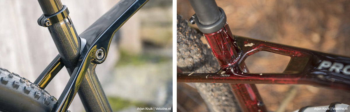 Desondanks weegt de Procaliber Gen 3 mínder dan z’n voorganger, zo’n 150 gram bij framemaat M, aldus Trek. Het grootste deel van deze gewichtsbesparing komt op het conto van een nieuw comfortsysteem: Isobow. Ja, je ziet het goed, dit systeem stelt het zónder het prominent aanwezige kogellager op de verbinding van zitbuis en bovenbuis, waarop bij Ispospeed letterlijk en figuurlijk alles draait. In plaats daarvan loopt bij de nieuwe Procaliber een extreem dunne staande achtervork door tot voorbíj de zitbuis. Volgens Trek fungeert deze constructie als een bladveer die een achterwaartse buiging van de zadelpen mogelijk maakt. Als dat wat abstract klinkt, lees dan het artikel dat collega Jeroen over de introductie van de Procaliber Gen 3 schreef even. Daarin staat een animatie die duidelijk laat zien hoe Isobow werkt.