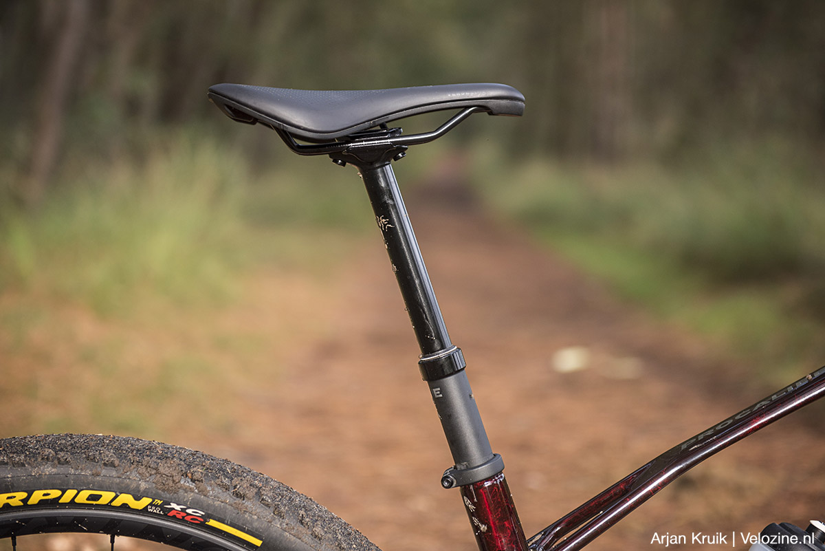 Het comfort dat de nieuwe Isobow-constructie levert is wel een dingetje. Helaas was het niet mogelijk de oude en de nieuwe Procaliber een-op-een met elkaar te vergelijken. Ik moet het dus doen met m’n herinnering aan eerdere ritten op de Procaliber van de tweede generatie. Desondanks heb ik sterk de indruk dat die oude Procaliber comfortabeler is. Niet dat de nieuwe Procaliber óncomfortabel is. In tegendeel, zolang je in het zadel blijft, voelt de Procaliber Gen 3 duidelijk minder hard aan dan de gemiddelde carbon hardtail. In dat opzicht doet de Isobow wat het moet doen. Het voor een hardtail baanbrekende comfort dat Trek met het Isospeed-systeem wist te bieden ontbreekt echter. Aan de andere kant: van een wippende zadelpen, een probleem waarvan de Procaliber-met-Isospeed bij een hoge trapfrequentie last kon hebben, is bij de nieuwe Procaliber geen sprake.