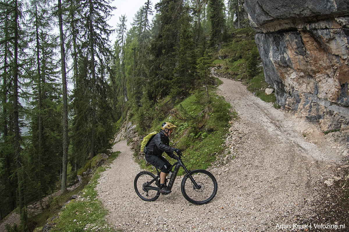 Hoe meer ik met e-mountainbikes in de bergen onderweg ben, hoe meer ik mijn beeld moet bijstellen van wat mountainbiken nu eigenlijk is. Klim je op een spierfiets doorgaans omhoog over relatief makkelijk toegankelijke asfalt- en grindwegen, om daarna te kunnen genieten van spannende afdalingen, met een e-mountainbike kun je óók de beklimmingen spannend maken. Dat wil zeggen dat je de trails die je normaal gesproken alleen maar zou afdalen nu óók in omgekeerde richting kunt bedwingen.