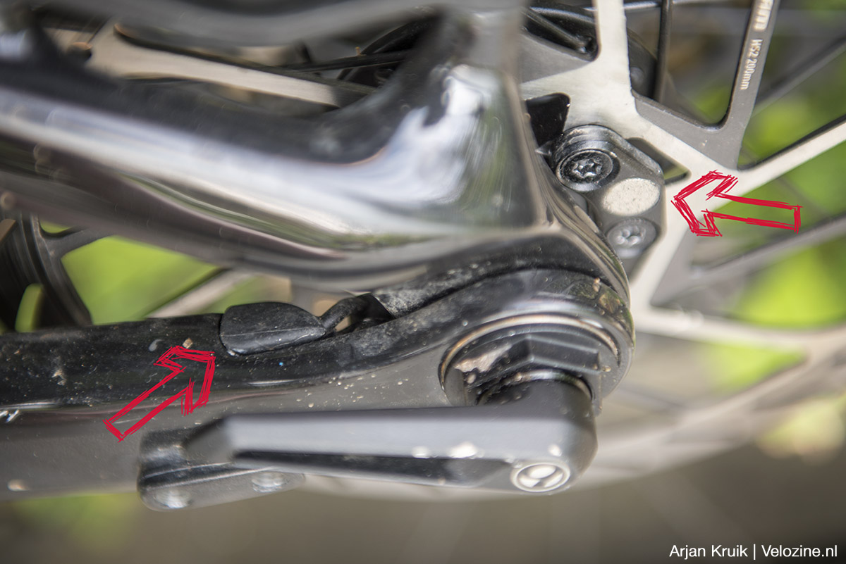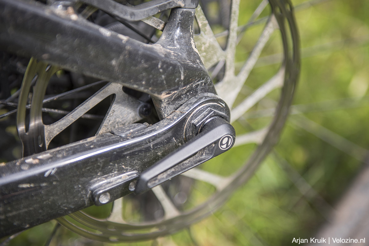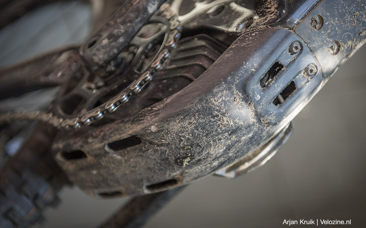 Ook doordacht is het stalen 34-tands voorblad. Ja, dat weegt wat meer dan aluminium, maar vanwege de grote krachten die op de aandrijving inwerken is staal wat mij betreft een betere keuze dan aluminium. De cranks zijn slechts 165 millimeter lang. Alhoewel dat in vergelijking tot de cranks op een spierfiets ongekend kort is, zouden ze van mij nog wel iets korter mogen. Zelfs met de trapas in de hoogste positie raak ik nog nét iets te vaak stenen en wortels.