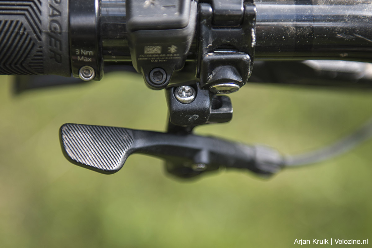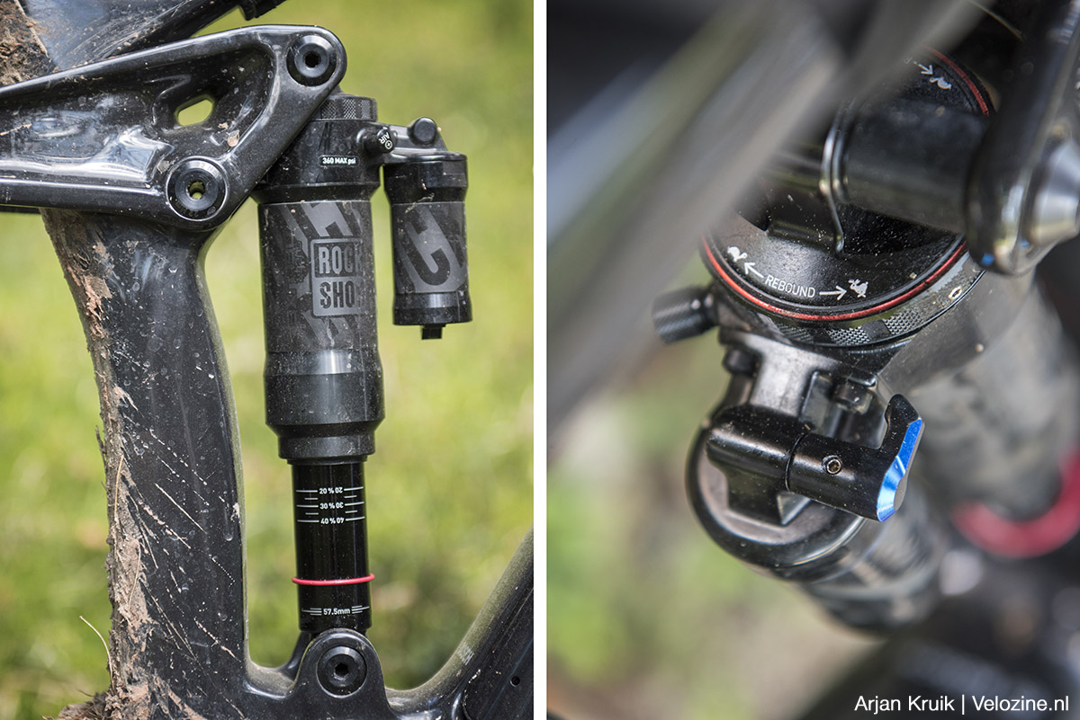 Aan de achterkant is een Rockshox Super Deluxe Select+ verantwoordelijk voor het opvangen van de schokken. De uitgaande demping is goed in te stellen, voor wat betreft de ingaande demping is er slechts keuze uit open of dicht, waarbij “dicht” niet geheel op slot is, maar een klimstand met extra veel demping van de ingaande slag. Nodig bij een e-bike, zo’n klimstand? Toch wel. Met name in lange en steile klimpassages over asfalt geeft de klimstand toch het gevoel dat je minder energie verspilt.