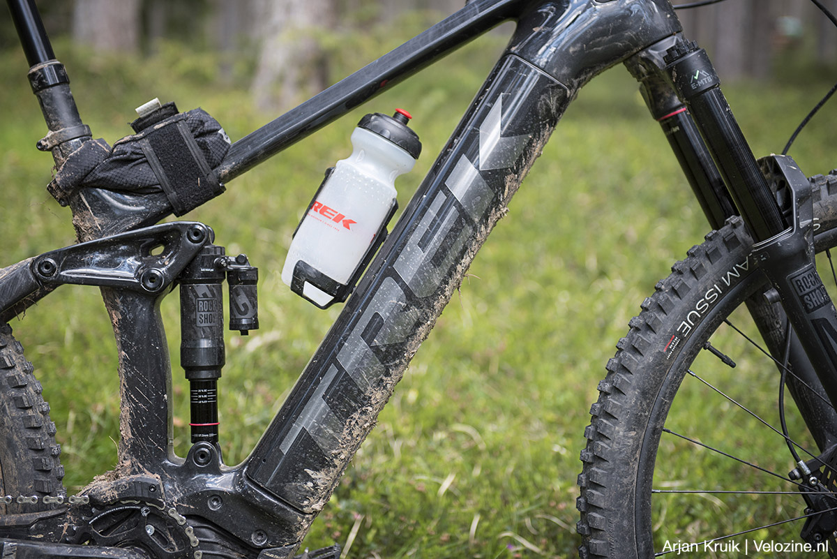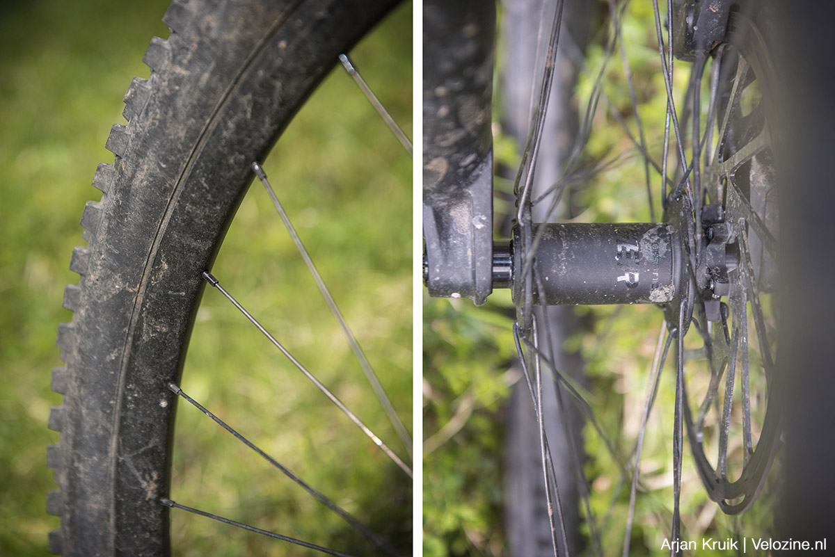 Ook de Bontrager-banden staan hun mannetje. Trek monteert een SE6 Team Issue aan de voorkant en een SE5 Team Issue achteraan, beide in 2.5 inch. Zeker gezien hun grove profiel rollen deze banden echt verrassend snel. Op zachtere bodems zijn de grip bij insturen van snelle bochten en de tractie in steile klimmetjes ronduit goed. Verandert de ondergrond van zand en klei naar harde rots, dan lijkt de compound van het rubber wat aan de harde kant. Zeker als die rotsgrond nat of vochtig is, leveren sommige andere, vergelijkbare banden duidelijk meer grip.