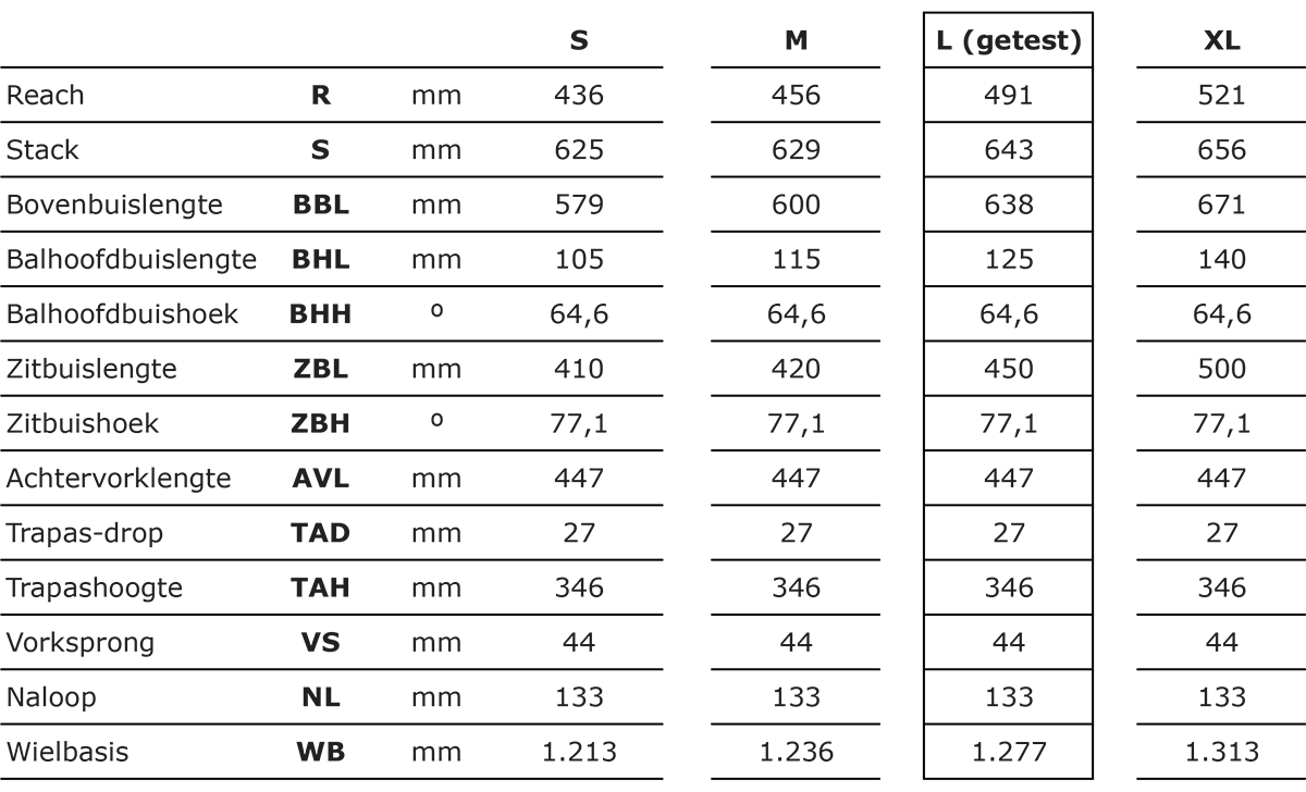 | Gewicht compleet | 23,95 kg (framemaat L) |