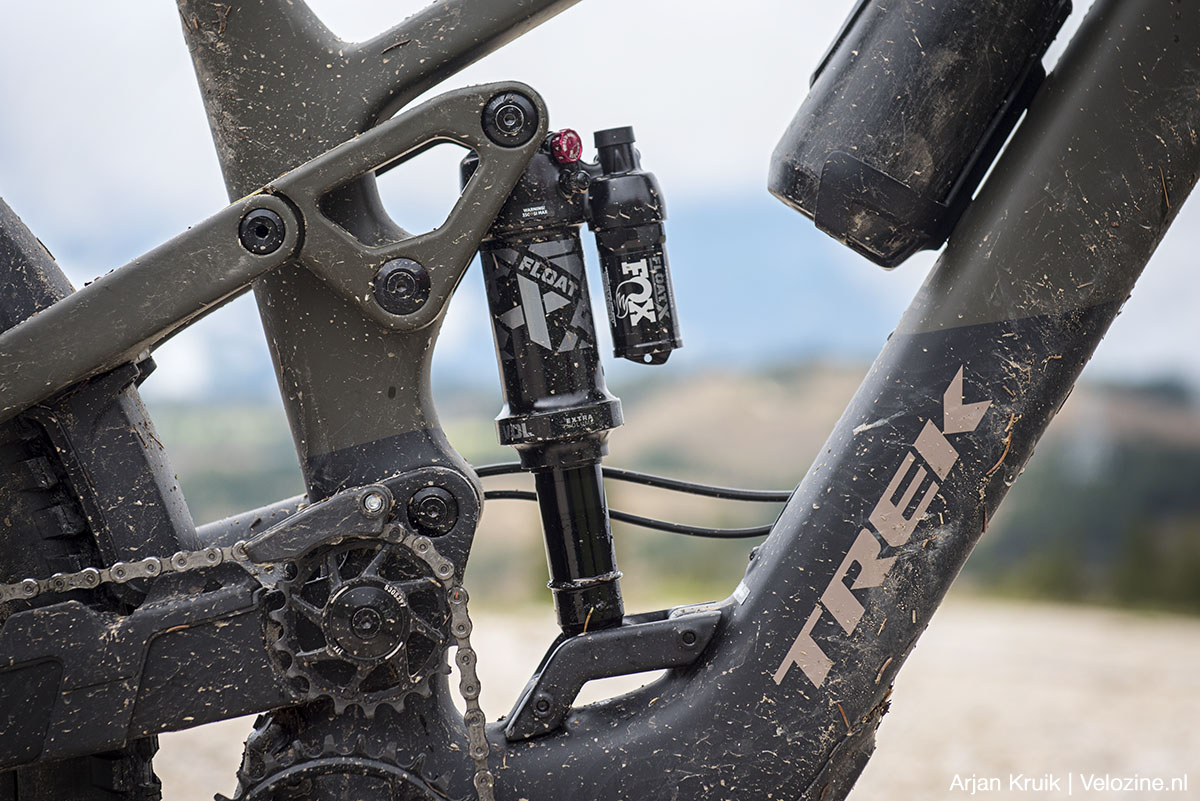 De goedkope Fox Rhythm aan de voorkant kan de achterkant helaas niet altijd even goed bijbenen. De relatief eenvoudige Grip-demper laat zich lastig afstellen; óf de demping is te gering waardoor de vork te weinig tegendruk biedt óf de demping is te sterk waardoor de gevoeligheid verloren gaat. Gelukkig heeft Trek als het gaat om geometrie aan de juiste knoppen gedraaid. Stabiliteit en koersvastheid gaan namelijk op wonderbaarlijke wijze samen met wendbaarheid en een speels karakter. Daardoor maak je niet alleen korte metten met ruige rotspaden, maar valt er ook op relatief gladde flowtrails veel lol te beleven.