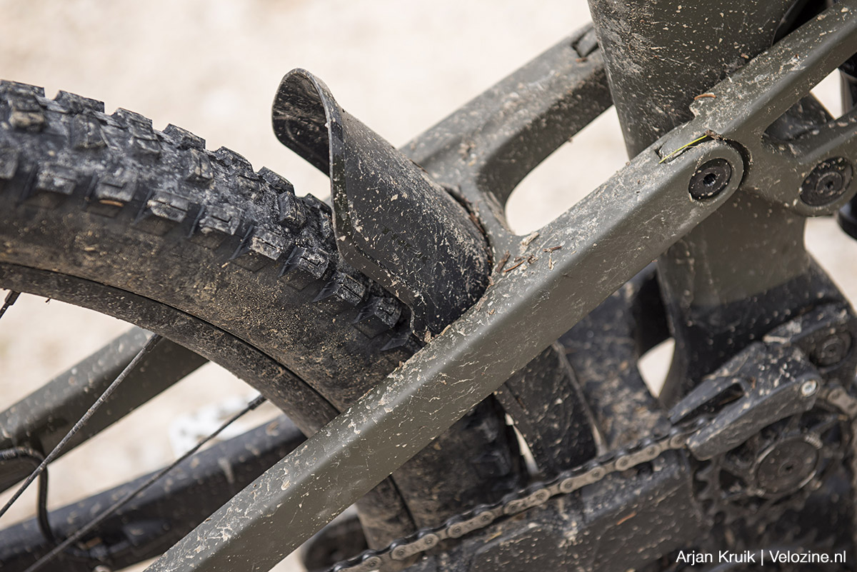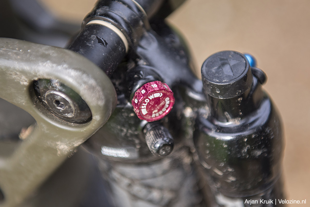 Door middel van een flipchip is de hefboomratio aan te passen van 20 naar 25 procent. Bij mijn gewicht van nog geen zeventig kilo lijkt de minst progressieve stand het meest geschikt. Méér progressie van het veersysteem is voor mijn gewicht niet nodig; bij een sag van 30 procent is de vering geen enkele keer doorgeslagen. Maar het is natuurlijk fijn dat je als rijder wel de keus hebt. Met name zware rijders kunnen er baat bij hebben de progressiviteit van het veersysteem te verstellen. Daarnaast biedt de meest progressieve stand ook de optie om een spiraalveer te monteren.