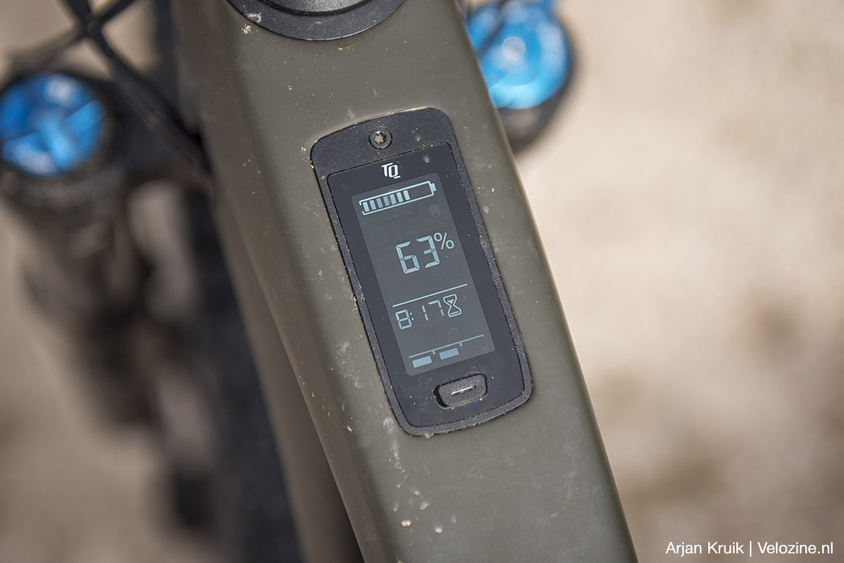 Als ik Bosch’ nieuwste CX-motor even als referentie neem: die weegt 2,8 kilo, beschikt over een koppel van 85 newtonmeter en kan een piekvermogen leveren van 600 watt. De TQ-motor daarentegen weegt maar 1,8 kilo, maar moet het stellen met een koppel van maar 50 newtonmeter en een piekvermogen van slechts 300 watt. Dat klinkt alsof zo’n TQ-motor qua ondersteuning inferieur is. Maar zoals collega Jeroen ook al bij de Trek Fuel EXe ervoer; in de praktijk blijken dat geringere aantal newtonmeters en watts nauwelijks een probleem. Ik zal er hieronder bij mijn rij-impressie meer over vertellen, eerst even de accu.