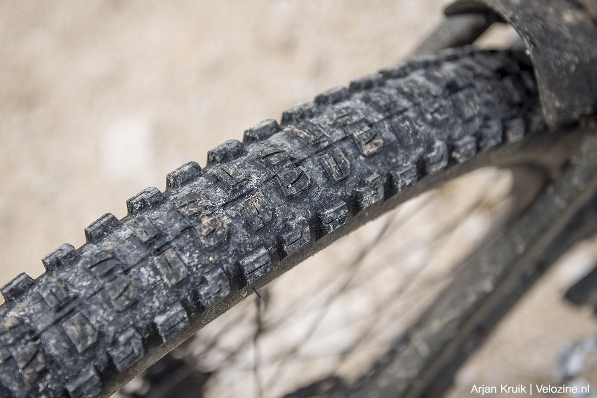 Ook de banden presteren ondermaats. Om te beginnen is het karkas van de gemonteerde Bontrager XR5’s echt véél te dun. Daardoor overleefden de band en de velg het contact met een kei niet. Merk op: m’n snelheid lag niet eens zo hoog en daarnaast weeg ik nog geen zeventig kilo! Maar niet is alleen het karkas te dun, ook is het rubber te hard en te weinig gripvast voor een bike als de Slash+. Wat de bandenkeuze nog vreemder maakt: op de duurdere Slash+ 9.9 liggen wél robuuste en gripvaste banden. Trek weet dus wel hoe het moet.
