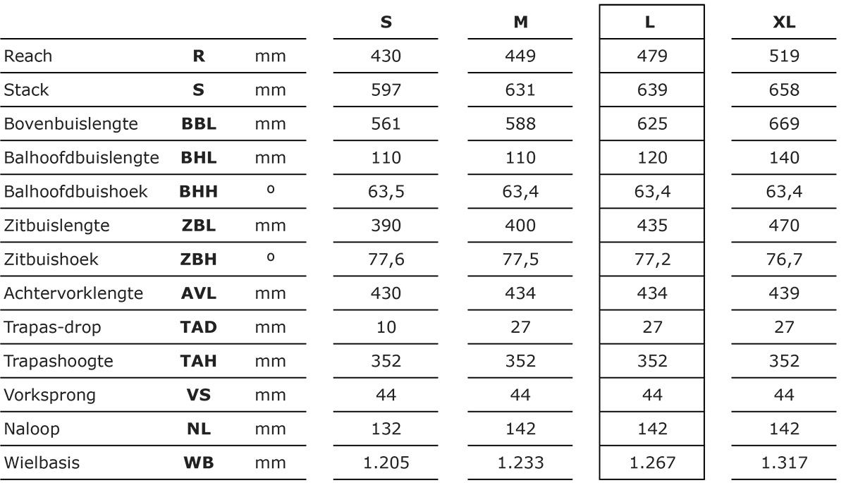 | Garantie | Levenslange garantie op frame voor eerste eigenaar, drie jaar voor opvolgende eigenaren |