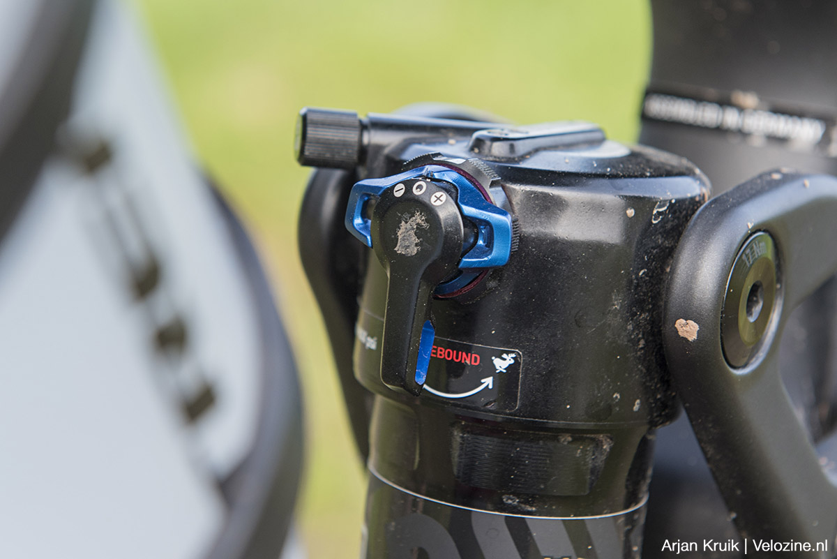 Op de relatief gladde Nederlandse routes is de stand met 14 procent progressie me het best bevallen. Ik kan er niet helemaal de vinger opleggen waarom, maar ik denk dat het komt door de geringere hefboom, waardoor de luchtveer wat minder gretig aanspreekt, wat zich op zijn beurt vertaalt in een wat harder (lees: sneller) gevoel. Tegelijkertijd worden wortels en kuilen met de demper in deze stand prima geabsorbeerd.