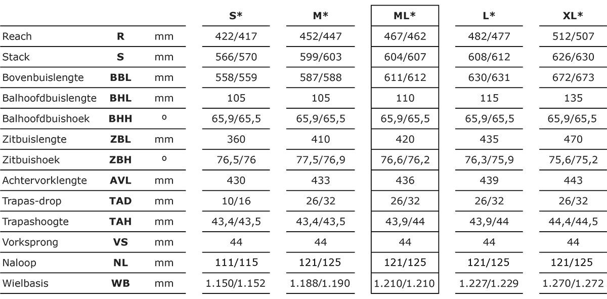 Ik loop de cijfers in de hoogste stand even met je door. In onze framemaat ML is de wielbasis 1.210 millimeter, meet de bovenbuis 611 millimeter, zijn de zit- en balhoofdbuishoek respectievelijk 76,6 en 65,9 graden en bedragen reach en stack respectievelijk 467 en 605 millimeter. De balhoofdbuis is 110 millimeter lang, de trapas staat 26 millimeter lager dan de denkbeeldige lijn door de wielassen en de zitbuis meet een geringe 420 millimeter. Bovendien is deze geheel recht, zodat er nu ook droppers met een groot verstelbereik in passen. Opmerkelijk: bij de Top Fuel Gen 4 groeit de liggende achtervork met de maat mee, van 420 millimeter in maat S tot 443 in maat XL. Bij onze testfiets in maat ML bedraagt de lengte 436 millimeter.