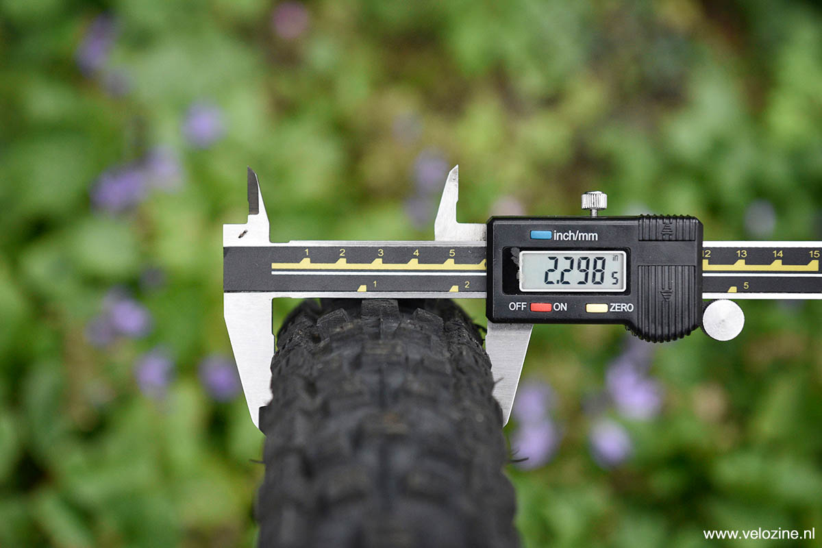 Eenmaal opgepompt rond de 30 mm brede velgen zorgen beide banden voor een verrassing. Bij de 2.35 inch Martello geeft de schuifmaat namelijk slechts 2.30 inch aan, terwijl bij de 2.30 inch Morsa de schuifmaat juist iets méér aangeeft: 2.37 inch. Het blijft verbazingwekkend dat bandenmaten vaker niet dan wel overeenkomen met de realiteit.