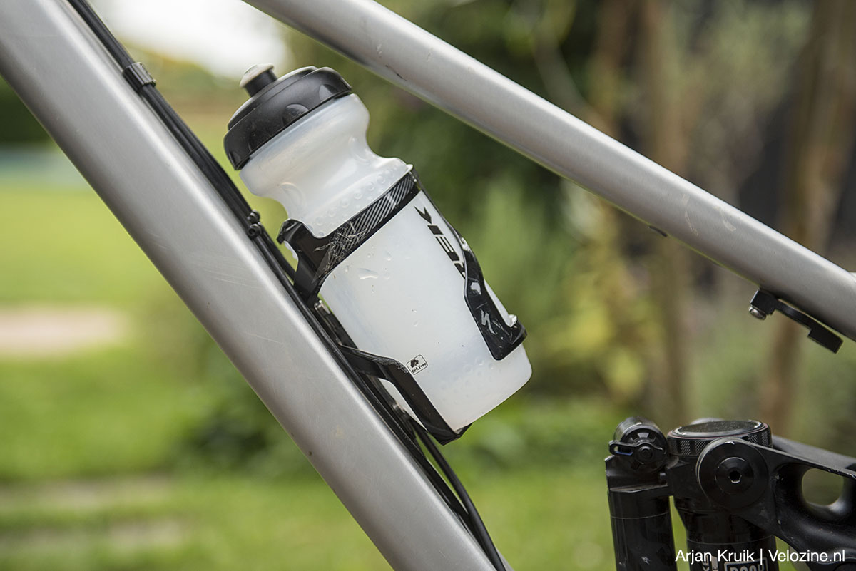 Er komen regelmatig bikes langs op de redactie waarin binnen het frame maar een klein bidonnetje past. Terwijl er, dat is het gekke, op het eerste gezicht binnen de voordriehoek wél ruimte lijkt te zijn voor een grote bidon. Het zal wel te maken hebben met de ruimte die ontwerpers vrij moeten houden voor het externe olieresevoir van de schokdemper, de zogenaamde piggy back. Maar als je het mij vraagt is dat vaak meer ruimte dan nodig.