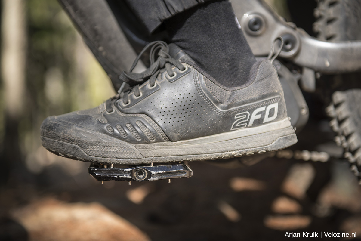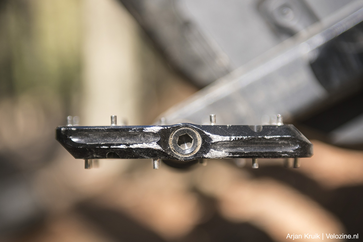 Begrijp me niet verkeerd, ik ben geen enkel moment grip tekort gekomen. Maar sommige andere pedalen bijten zich nóg gretiger vast in de zolen van je schoenen. Uiteraard is het een en ander óók afhankelijk van de hardheid en kleverigheid van de schoenzool. Met een paar Specialized 2FO DH Flats met zachte SlipNot ST-zolen is de grip veel beter dan met een paar Bontrager Flatlines met veel hardere Vibram-zolen. Het een is overigens niet beter dan het ander, maar eerder een kwestie van smaak. Met de Specialized 2FO’s moet je je voeten gelijk goed op het pedaal plaatsen, want herpositioneren is vanwege de zachte zolen vrij lastig. Bij de hardere zolen van de Bontrager Flatlines is dat veel makkelijker.