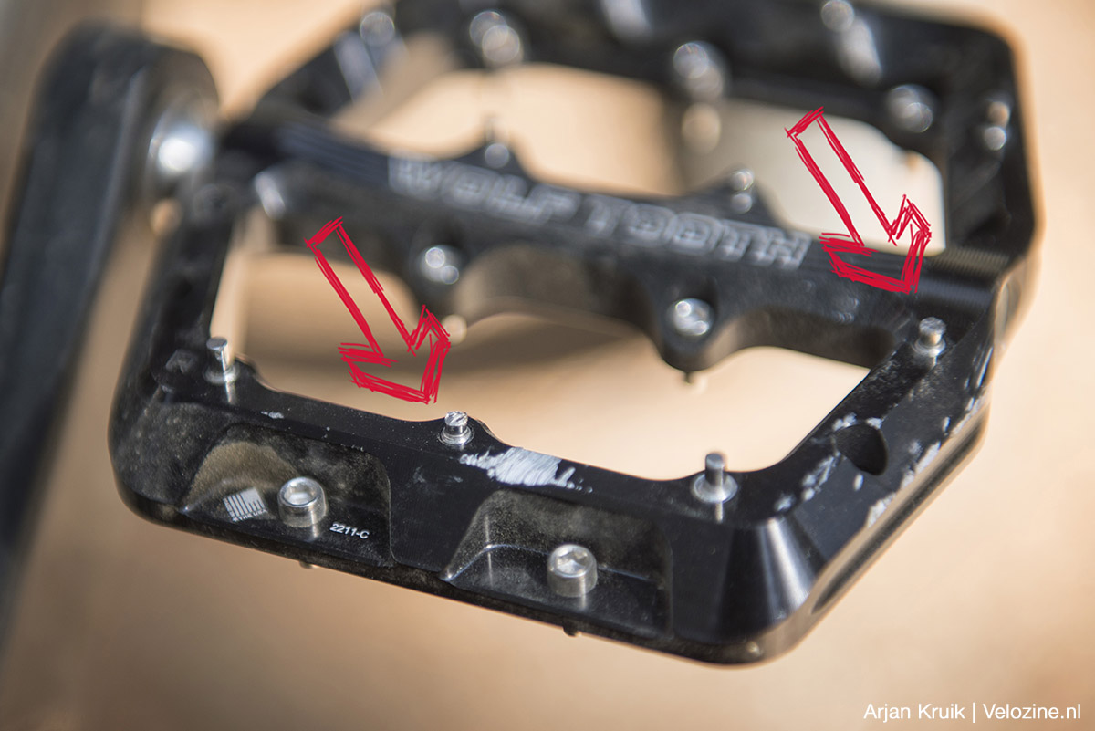 Los van hoe ze bevallen zijn de Wolf Tooth Waveforms mooi spul. Fraai gefreesde aluminium body, roestvaststalen as, drie industrielagers, goed afgedicht glijlager, roestvaststalen pinnetjes. Die laatste hebben de Alpentrip trouwens niet allemaal overleefd. Een harde confrontatie met een rots die niet aan de kant ging heeft een flink aantal pinnetjes de das omgedaan. Gelukkig krijg je een zakje met zes reservepinnetjes meegeleverd. En zelfs als ze volledig afgebroken zijn, is het vervangen zo gebeurd. Wel ben ik daardoor bijna helemaal door de voorraad reservepinnetjes heen. Op zich geen probleem, een nieuw zakje kost maar 4,95 euro.