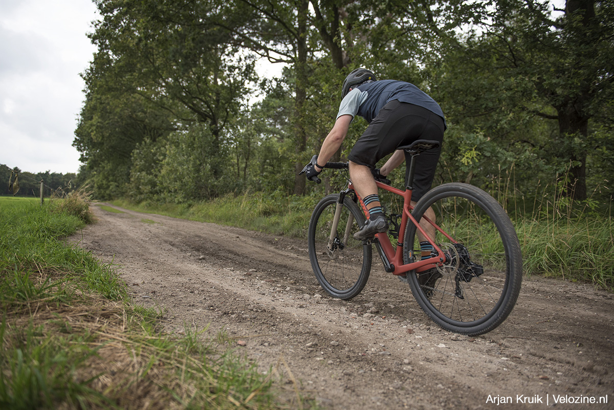 Met een vrijloophoek van circa vijf graden pakt de achternaaf lekker vlot op bij het aanzetten. En ook het stuurgedrag is aangenaam direct. Nee, lang niet zo direct als de net al benoemde Cadex AR-wielen. Die gravelwielen zijn echter in alle richtingen kneiterstijf en de WTB CZR i23 wielen zijn wat mij betreft veel meer en vooral gunstiger gebalanceerd in het spectrum van stijfheid en vergevingsgezindheid.
