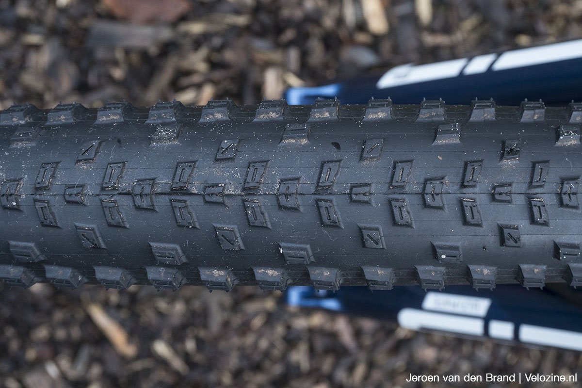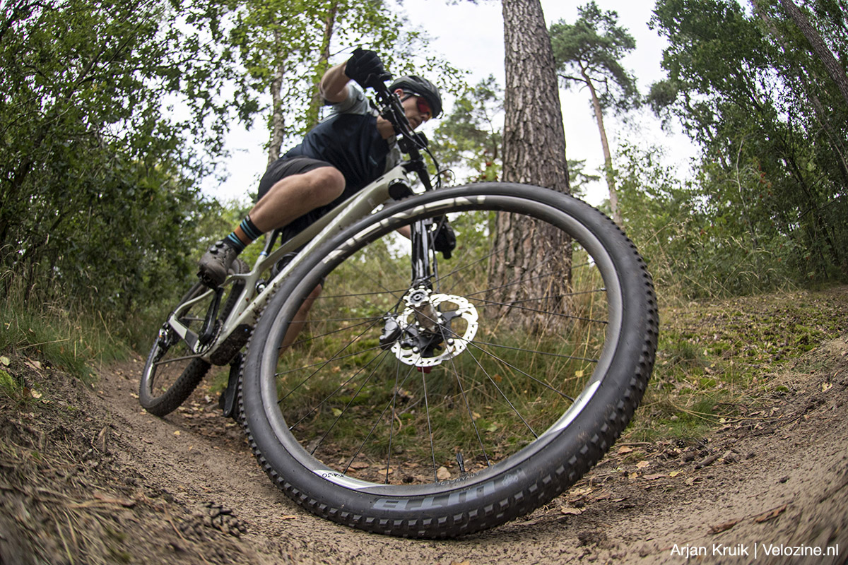 Wat daarbij ook mee speelt is dat de band vrij rond op de velg staat. De schoudernoppen staan vrij ver naar de zijkant en worden minder snel dan bij onder meer die al aangehaalde Thunder Burt aan het werk gezet. De afstand tussen het middenprofiel en de schoudernoppen is daarbij ook groot. Bij het insturen, of op op off-camber-secties, kom je dus al snel terecht in een redelijk ongedefinieerd gedeelte van het profiel, met weinig noppen voor mechanische grip. Voor een achterband vind ik dat niet erg; die volgt immers wel. Maar bij gebruik als voorband ondermijnt dat het vertrouwen.