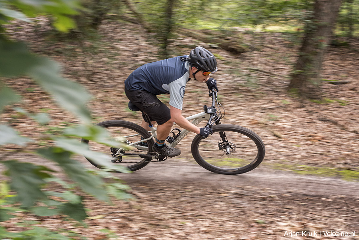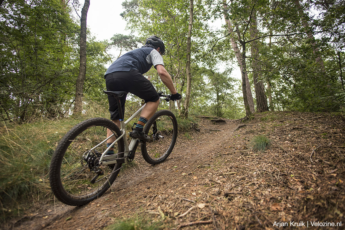 Voor een band met zulke spaarzame noppen zoals de Macro, heeft-ie behoorlijk veel grip. Al is dat vanwege het lage noppenprofiel niet zozeer mechanische grip, maar vooral tractie die het toegepaste rubber genereert. Op harde bosgrond met af en toe een worteltapijt heb ik niet snel de indruk te kort te komen. Hier speelt ook het soepele SG-karkas z’n troeven uit. Want bij een bandenspanning van zo’n 0,9 tot 1,2 bar voelen ze misschien niet zo soepel als het Super Race-karkas van een Schwalbe Racing Ralph/Ray en een Thunder Burt, veel scheelt het niet. Sterker; de combinatie van demping en ondersteuning lijkt zelfs iets gunstiger te zijn. De vervorming van het loopvlak is ruim voldoende om het minimalistische profiel en het rubber grip te laten vinden.