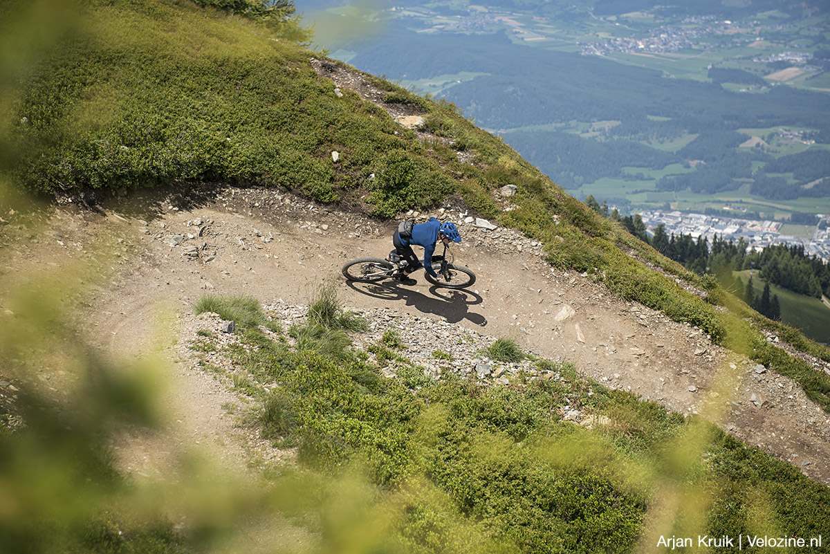 Ik merk het lek in de Wicked Will op onderaan de Kronplatz, na een run over de befaamde Herrensteig. De luchtdruk neemt geleidelijk af en antilekvloeistof sijpelt naar buiten, niet in staat het lek te dichten. De volgende keer toch een dikker karkas nemen! Normaal gesproken zou ik in zo’n geval een reservebandje uit m’n rugzak vissen en dat omleggen. Maar nu heb ik de TCS Rocket Plug Kit van WTB bij me en dat blijkt flink sneller te werken. Plugje door het ankertje rijgen, plug op de prikker plaatsen, prikker plus plug door het gaatje in de band duwen, klaar.