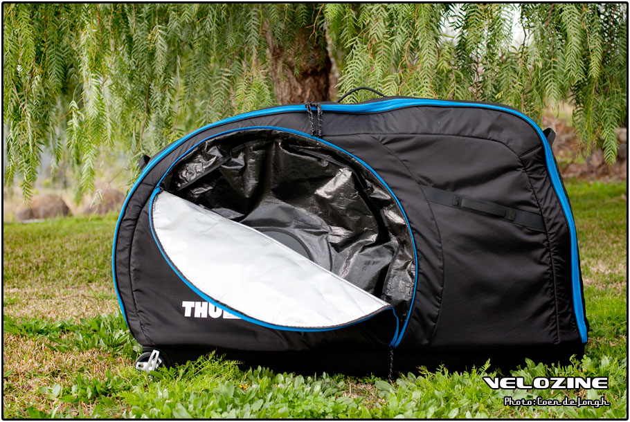Natuurlijk, de gelijkenis met de Bike Bag van het Duitse EVOC is groot. Sterker, je moet zoeken om de verschillen te ontdekken. Toch is de Thule niet zomaar een EVOC met een andere kleur en ‘sticker’. Over de maten lijkt iets langer nagedacht te zijn. Met name in de breedte heeft de tas wat meer ruimte, al verschillen de buitenmaten nauwelijks. Voor fietsen met boost achternaaf en een verende achterbrug, is dat beslist geen luxe, maar haast noodzaak. De staande vorkpoten van je achterbrug zitten bij veel frames namelijk op de zelfde hoogte in de tas als je wielnaven aan weerszijden van de tas. In de Duitse tegenhanger die wij hier op de redactie hebben, was het echt proppen en sjorren aan de ritsen, om die kant van de fietstas dicht te krijgen. Wellicht dat bij de Thule ook de opening vanaf de bovenzijde van de wielvakken meehelpt ten opzichte van de zijdelingse variant bij de Duitser. Ah, hebben we het volgende verschil al te pakken.