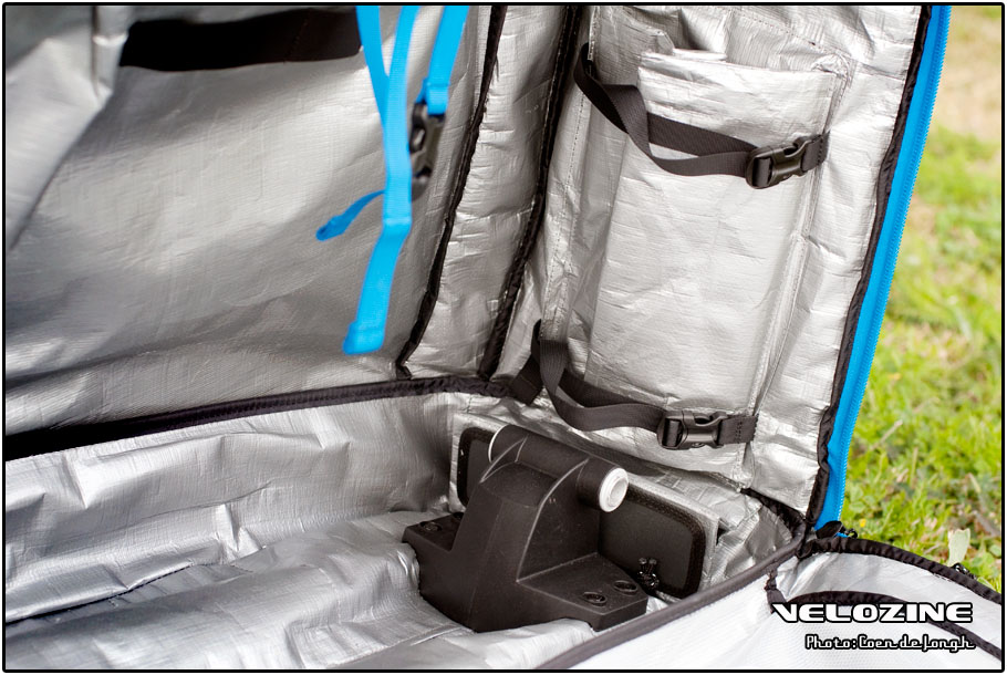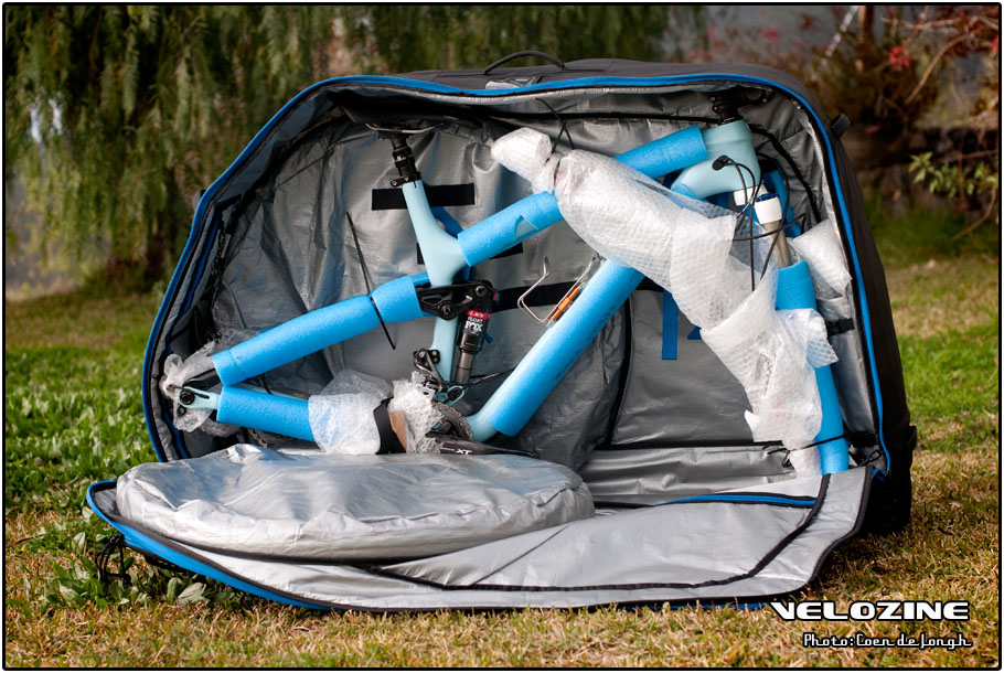 De EVOC tas wordt geleverd met een protectorpad die om je boven en onderbuis bevestigd kan worden, zodat het gedemonteerde stuur met remgrepen en shifters zich tijdens de reis niet door je frame vreten. Zo’n pad levert Thule echter niet mee. Je zult zelf aan de gang moeten met noppenfolie, isolatiebuis, karton of een combinatie daarvan. Persoonlijk vond ik dat geen probleem, omdat je meestal toch dingen naar eigen smaak aanpast.