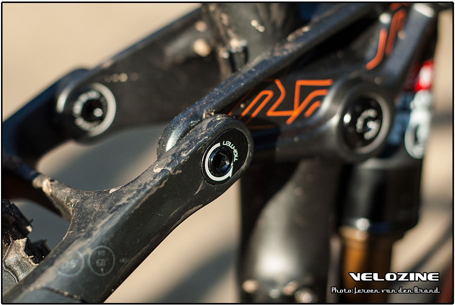 "Nog wat meer reserve", zegt'ie dan. Want het moge inmiddels duidelijk zijn dat de fiets meer reserves heeft dan je misschien op basis van de getallen zou verwachten. Maar mocht het écht nog lomper moeten, dan is er ook met de geometrie en vering nog wel wat te doen. Met een kortere stuurpen, een 160 mm air shaft in de vork (hierover zo direct meer, geduld!) en een excentrische lagerbus in de achterdemper komt de Remedy helemaal in "standje Factory Racing". Een graadje flauwer, zonder dat het bracket omhoog komt. Het zal de afdalingscapaciteiten van de fiets ongetwijfeld nog verder verbeteren! Maar omdat dit niet even in kwartiertje om te bouwen is en ik zeker weet dat de fiets dan slechter gaat klimmen, wacht ik tot "de nood aan de man is."