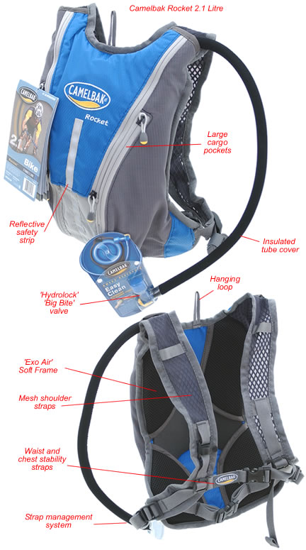 Prima. Het Camelbak reservoir past goed in de rugzak en laat zich eenvoudig fixeren met een klittebandje. Nadeeltje: de schouderbanden van de rugzak bieden te weinig fixering voor de slang. Een optioneel clipje weet raad.