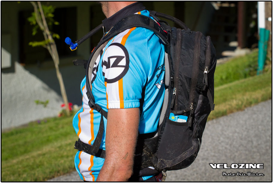 De Gravit 10+3 is een dagrugzak, en daarmee een stuk volumineuzer dan een compacte old skool Camelbak Rocket. Om een dag comfortabel te kunnen fietsen is het belangrijk dat rugzak goed kan worden ingesteld op de drager en niet te sterk aanwezig is. En o ja, dat hij ook op die monsterdrop op zijn plek blijft zitten.