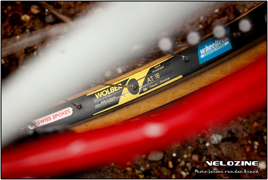 Bij thuiskomst heb ik de fiets nagekeken en al het toegevoegde sierwerk weer verruild voor de originele onderdelen. Nieuwe kabels er op en rijden maar. Nee, toch niet. De Wolber AT18 velgen stammen nog uit de periode dat het doorremmen van een aluminium velg nog niet bestond en zijn keihard en sterk. Maar het achterwiel had toch een slag. Echter, bij het richten verpulverden de aluminium spaaknippels bij alleen al het zien van de spaaksleutel. Nieuwe spaken en nippels konden dus geen kwaad. Een verse set IRC GeoClaw-banden en hij was weer trail worthy.