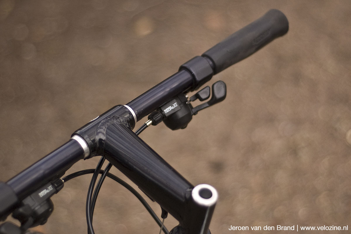 Af fabriek was deze Rocky Mountain Summit voorzien van Shimano’s ST-M091 STi RapidFire schakelaars. Dat was de eerste serieuze poging van de Japanners om meer ergonomisch schakelen mogelijk te maken in opvolging van de enkele duimschakelaars boven op het stuur. Het idee was goed: twee drukhendels boven elkaar, in een compacte behuizing gepositioneerd onder aan de remgreep. Maar daarmee is het ‘goede’ wel op. Bij elke up shift heb je het idee dat de hendel elk moment kan afbreken en omdat je (ver) van huis bent, zie je in de praktijk dan geheel af van schakelen. De indexering van de voorderailleur is dusdanig dat deze bij gebruik van de twee grootste of kleinste kransjes op de 7 speed cassette aanloopt. Kortom: pick a gear and stick to it!