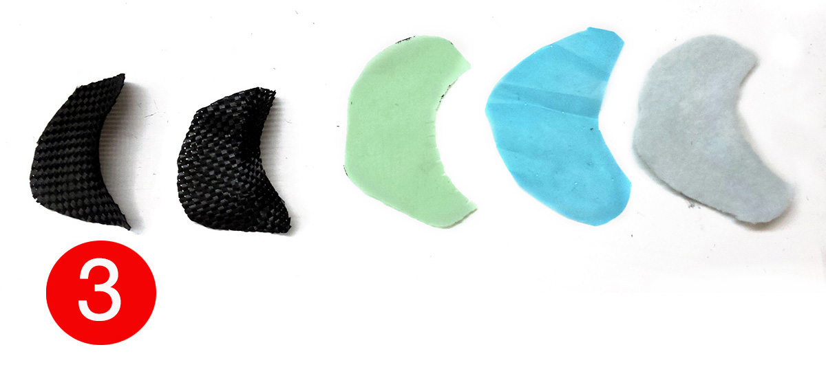 Terug naar mijn kapotte Haibike. Het reparatieproces begint met het zorgvuldig wegschuren van de beschadigde carbon-lagen (foto 2). “Omdat ik maar weinig hoef weg te schuren, plaats ik maar twee nieuwe lagen terug. De nieuwe lagen liggen in verschillende richtingen, 45 graden, om in alle richtingen maximale sterkte te realiseren. Hoe groter de reparatie, hoe belangrijker dit is”, zo weet Casper.