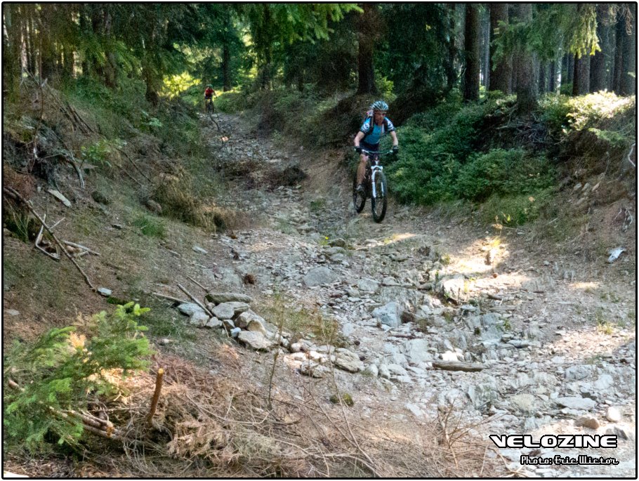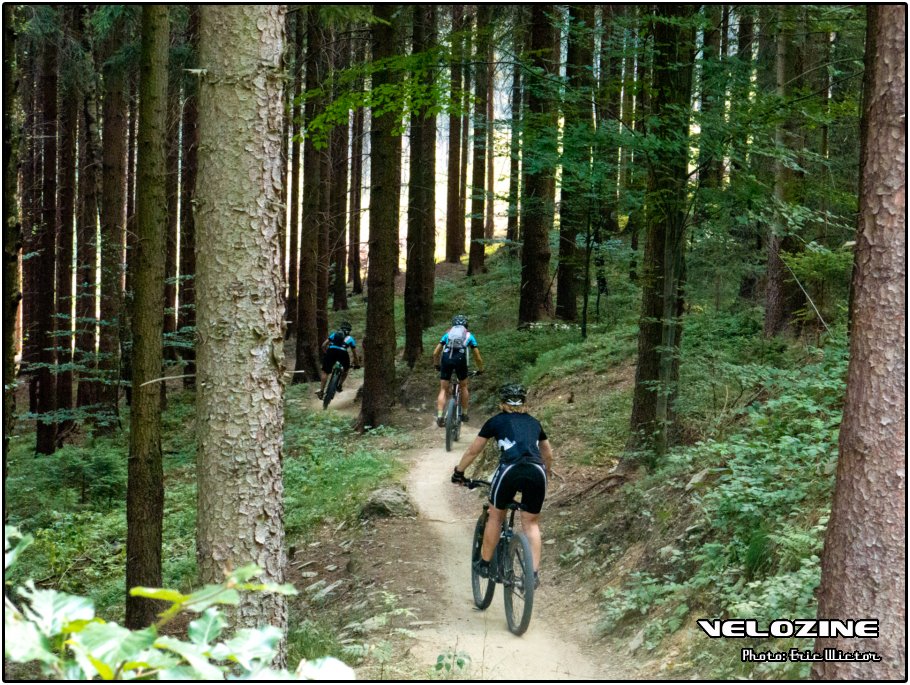 De paden zijn perfect onderhouden, flowy en nodigen uit tot steeds harder pushen, waardoor je ongemerkt toch moe wordt. Steil klimmen wordt overal vermeden, waardoor je ongemerkt hoogtemeters maakt op de bergflanken. Op de hoger gelegen plekken heb je een mooi uitzicht over het Poolse grensgebied, voor je weer via kombocht na kombocht donker bos in duikt terug richting Nové Město.