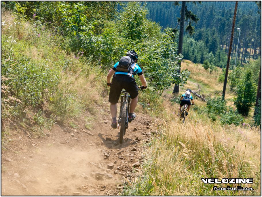 Een paar kilometer van Boží Dar ligt aan de Duitse kant van de grens Trailcenter Rabenberg. Toegang kost € 7,- per dag of € 11,- per twee dagen, waarvoor je vijf specifiek voor de MTB gegraven en bewegwijzerde route’s terug krijgt. Toen wij er waren was het bloedheet en stoffig, en hadden aan twee dagen eigenlijk niet genoeg. De groene en blauwe routes zijn mooi maar niet al te uitdagend, daarna wordt het steil en komen er veel putten en wortels in het spel, wat voor behoorlijk uitdagend rijden maakt.