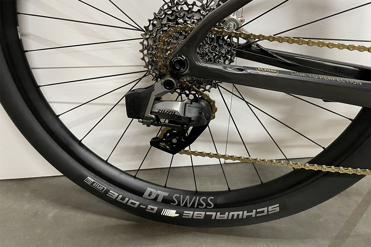 Strandracen is een gevecht met de element. Het mulle zand enerzijds, anderzijds het zuigende zand, maar vooral de wind. Met de wind tegen kan de snelheid behoorlijk laag liggen. Wind mee echter… dan zijn snelheden van 50 kilometer per uur niet ondenkbaar. Een heel extreem breed bereik voor de aandrijving is echter niet nodig, maar je wilt wel fatsoenlijk mee kunnen trappen op snelheid. Om die reden zie je bij de aandrijving van een beachbike vaak racefietsonderdelen terug.