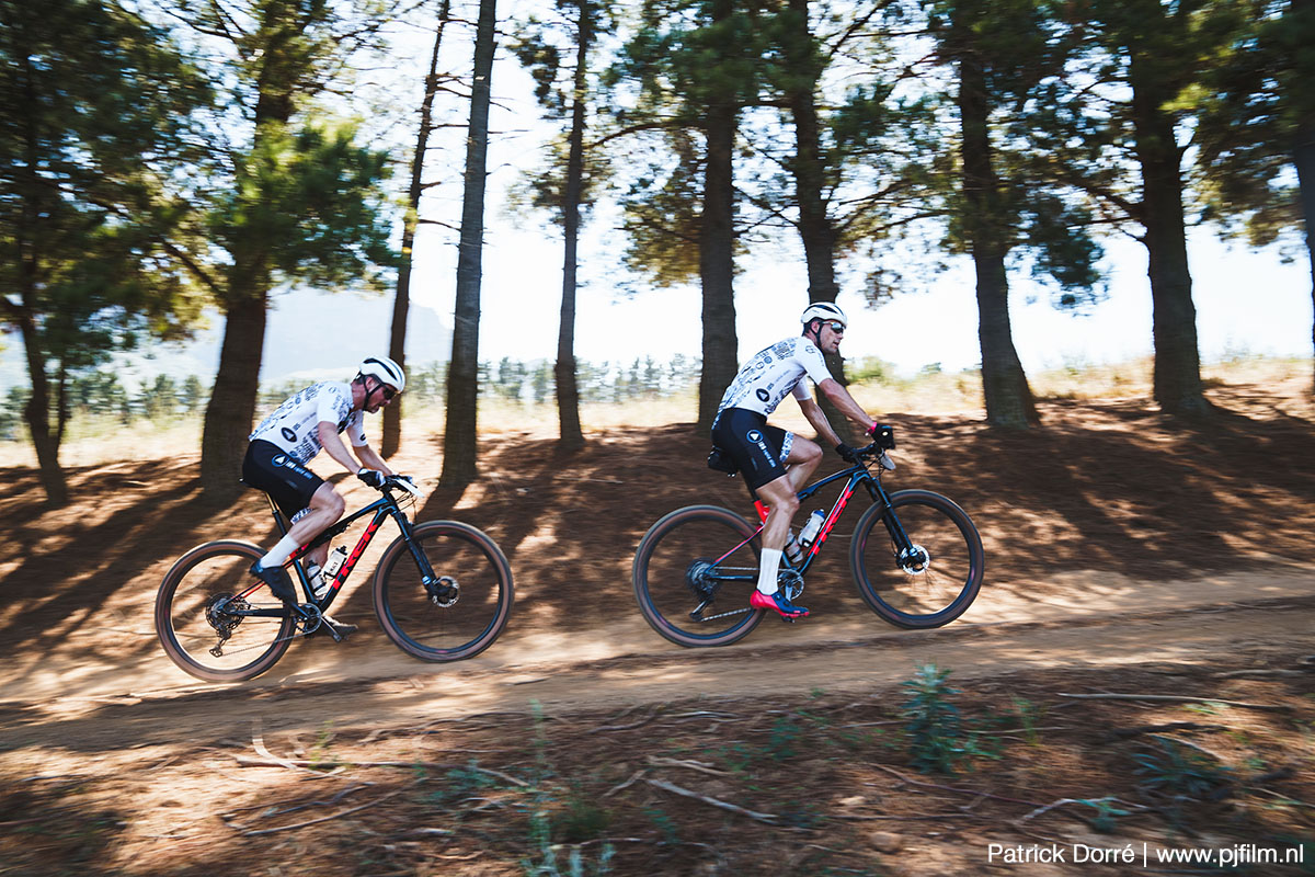 Het einde van de zomer nadert in Zuid-Afrika maar daar was tijdens de proloog weinig van te merken. Met temperaturen boven de 30 graden (in de schaduw) en een geplande starttijd rond het middaguur belooft het een zware dag te worden. Thijs laat zien dat hij er zin in heeft en start als een raket. Maarten moet even bijschakelen, en hapt naar adem. Tot de eerste klim is het nog zoeken naar het ‘juiste’ tempo. Al snel volgt de eerste lange klim en het is belangrijk om een steady tempo te rijden, zodat ze wat overhouden voor de tweede klim. Al vrij snel voelt het duo de hete adem van Platt en Sauser in zijn nek. Nog voordat ze boven komen komt hun sneltrein voorbij. De Epic Allies denken er geen seconde over na om hun karretje aan te haken. De koers is nog lang. “Dit is dag 1,” vertellen ze zichzelf. Wat ze dan nog niet weten is dat de alleskunner Miguel Martinez met zijn ploeggenoot Pirazolli nog harder rijden, en de winst in de Proloog binnenslepen. Op 40 seconden volgt het duo Platt/ Sauser. De Epic Allies eindigen op een keurige vijfde plaats op bijna 3 minuten. De kop is er af!
