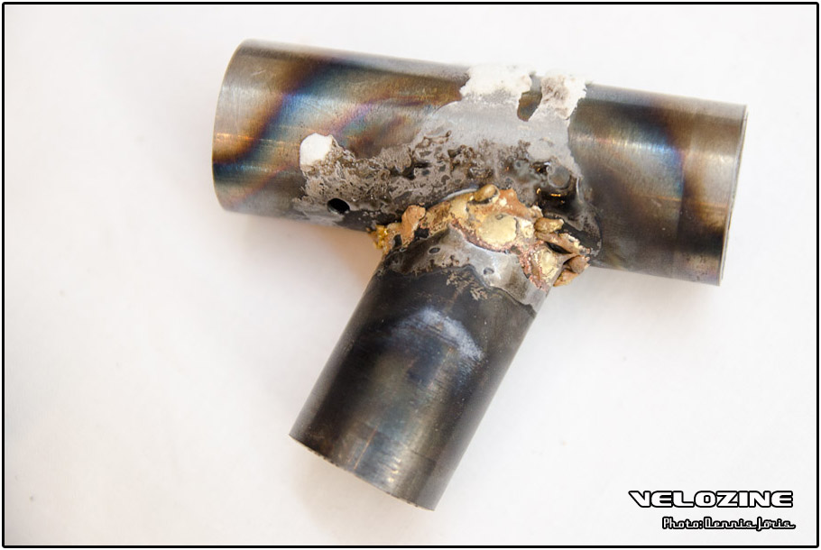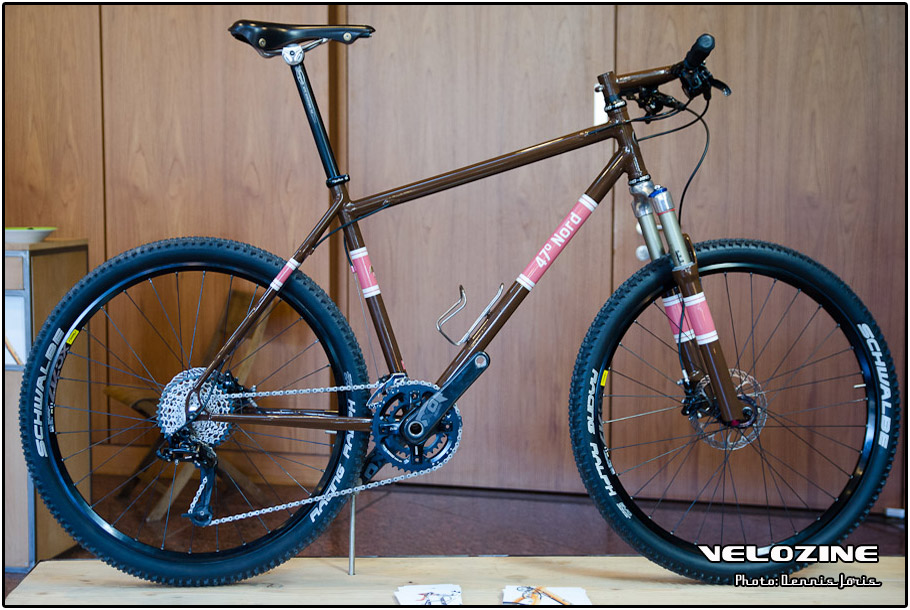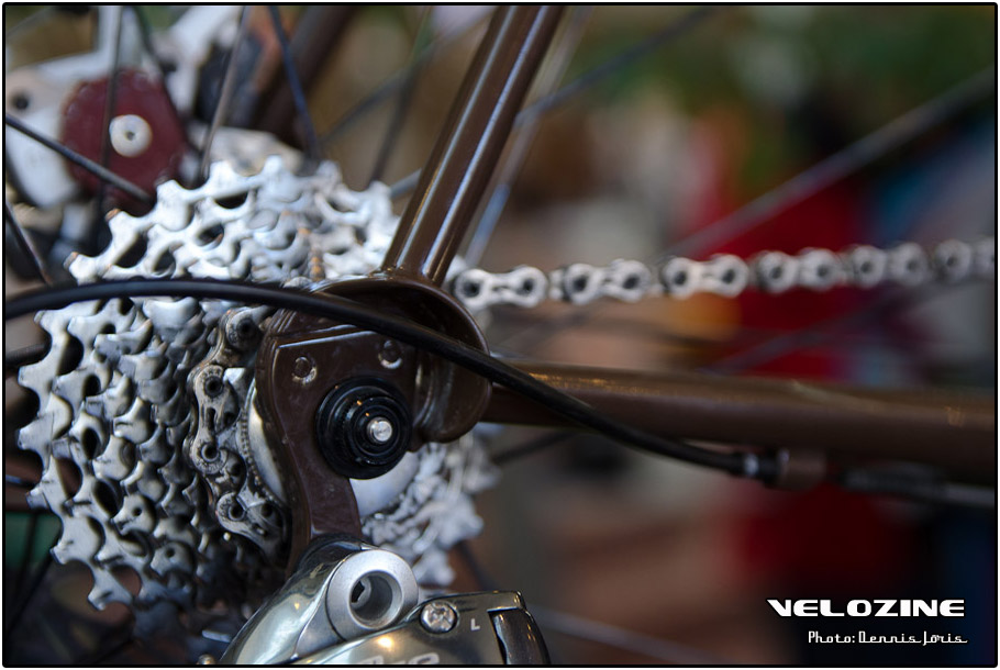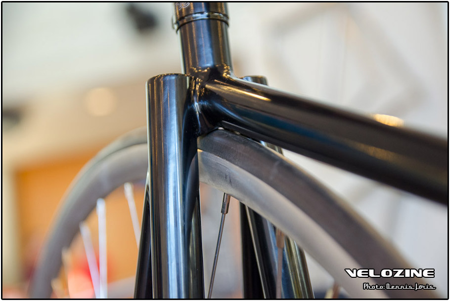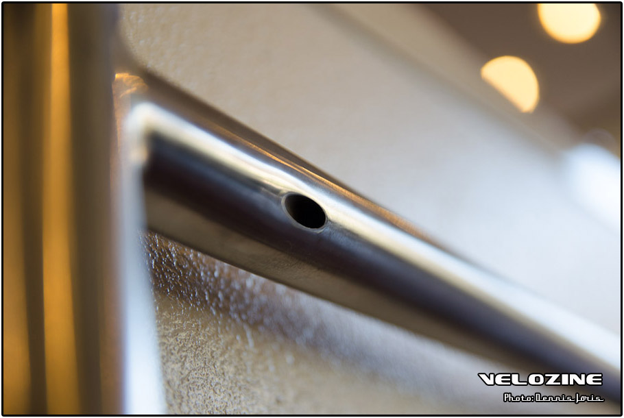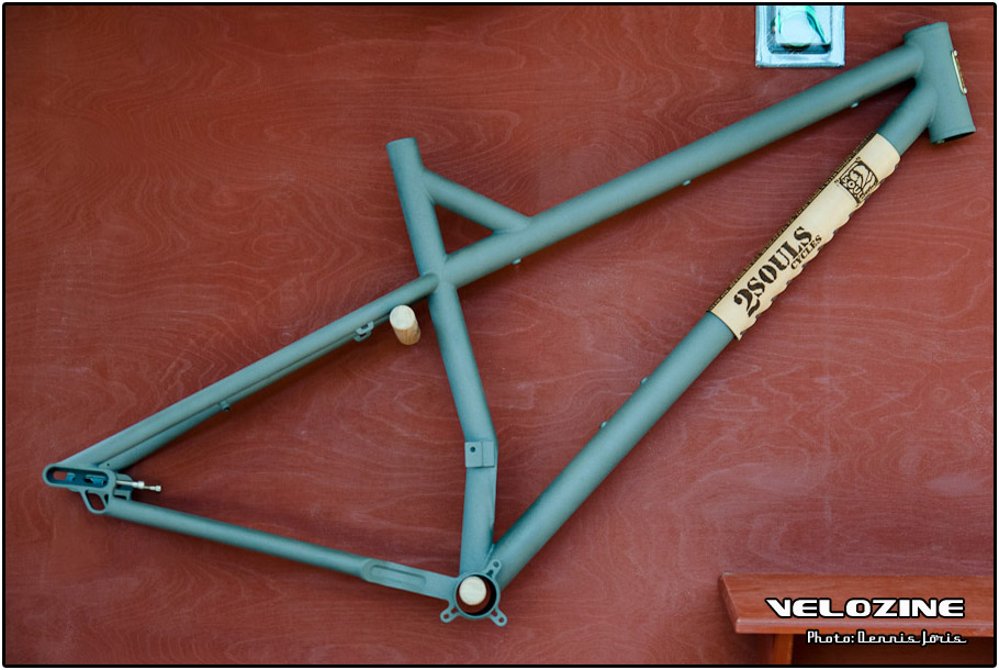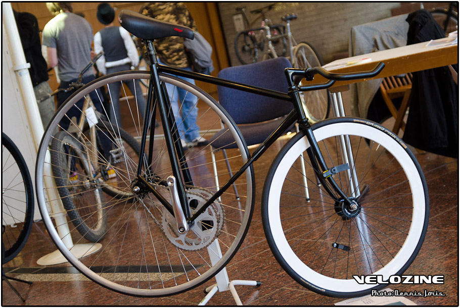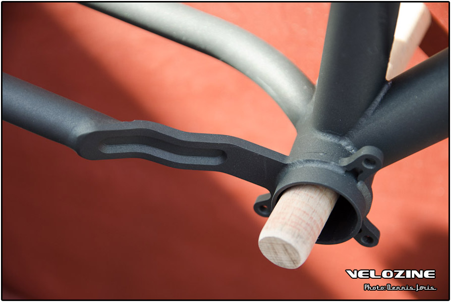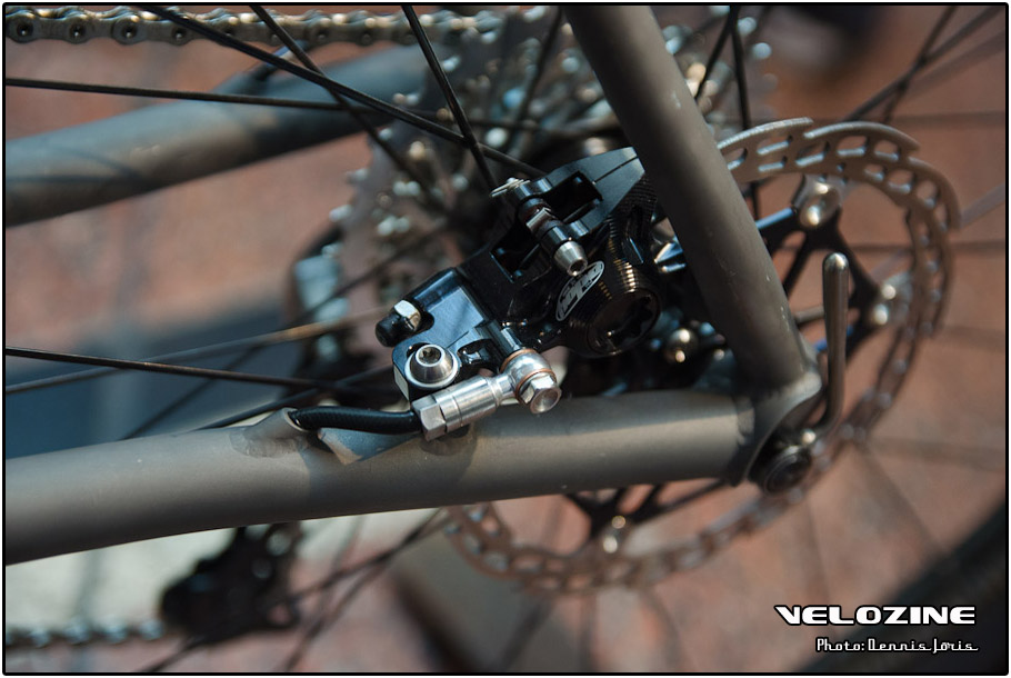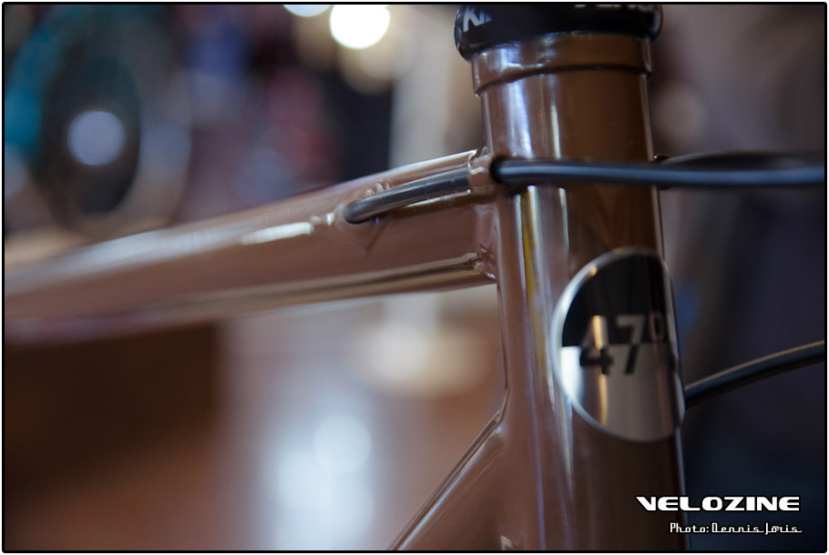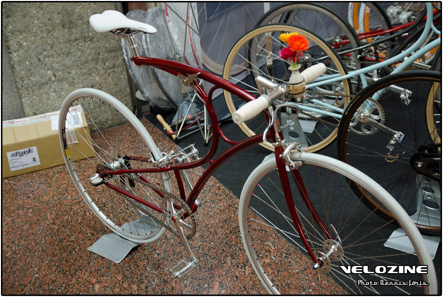 Uiteraard zijn er op dit soort shows, waar de ‘underground scene’ zich openbaart, trends te zien. Interne kabelgeleiding is er zo één. Sommigen gingen zeer ver om dit te bewerkstelligen, met wat ongelukkige knikken en ultra korte kabels tot gevolg… Een paar jaar geleden introduceerde buizenfabrikant Reynolds een roestvaststalen buizenset, de 953. Een goedkopere en vooral wat makkelijker te verwerken variant, de 931, heeft de deuren ook geopend voor amateur framebouwers, getuigen de enkele voorbeelden die we zagen. En waar staal ongeveer het meest gebruikte materiaal is voor menig amateur en professioneel custom framebouwer, lijkt hout het ‘buzzwoord’ momenteel. En onder die categorie, hoewel het natuurlijk geen hout is, noemen we ook bamboe. Beide vragen om geheel eigen productiemethoden en ontwerpen en wijken daarin nogal snel af van de traditionele framebouw. Zij die wel met ’traditionele’ materialen en dito methoden werken, moeten zich letterlijk in veel bochten wringen om met zeer bijzondere creaties te komen…
