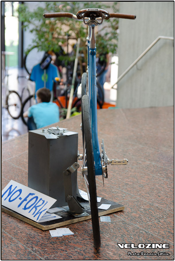Dat ‘anders zijn’ ook subtiel kan, bewees Erik de Rooy met zijn eigenzinnige creatie “No-Fork”, waarbij de wielen onder een kleine hoek gemonteerd zijn via eenzijdige ophangingen. En wie dacht dat we met 650b, 29″ en een verdwaalde 36″ fiets de discussie over wielformaten reeds voldoende hadden besproken heeft het mis. Seli toonde namelijk een racefiets met 30″ wielen….