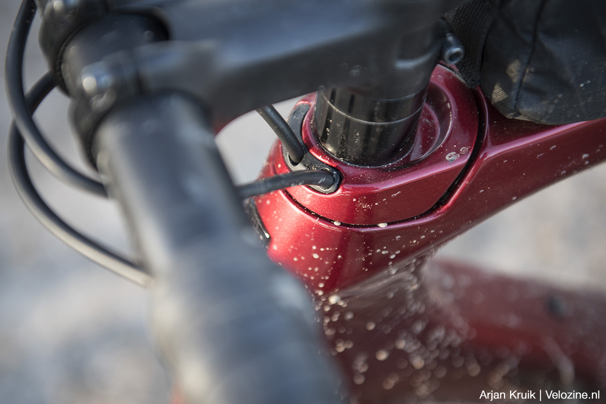 De laatste tijd zien we echter ook steeds meer mountainbikes opduiken waar de kabels niet via een poortje in een framebuis, maar dóór het bovenste balhoofdlager het frame binnen gaan. En soms lopen ze óók nog door het stuur en de stuurpen. Die volledige kabelintegratie komt uit de wielrennerij. En dáár heeft het ook echt een functie. Want wie zijn racefiets aerodynamisch wil optimaliseren, ontkomt niet aan het feit dat die stukjes zichtbare kabel aan de voorzijde van de fiets – hoe klein ook – vanwege hun ronde vorm en hun plek vóór de balhoofdbuis de luchtstroom om het frame verstoren. Met volledig geïntegreerde kabels bespaar je meetbaar enkele Wattjes. Misschien is dat voor de toerder minder relevant, in de topsport is elk bespaard Wattje echter pure winst. En dus – of je er nu om vraagt of niet – op steeds meer (aero-)racers is het stilaan een standaard aan het worden.