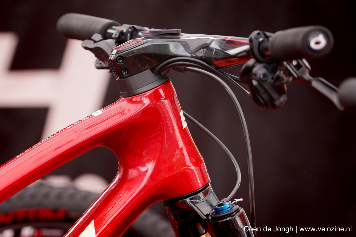 - Kans op kraakjes. De Canyon Spectral van collega Lars heeft geen kabels dóór het balhoofd, maar al wel een extra ring tussen de vorkbuis en het extra grote balhoofdlager. Hiermee is het frame al voorbereid op een toekomstige frameupdate met kabels binnendoor. Op het mtb-news forum blijkt dat hij zacht gezegd zeker niet de enige ben bij wie die constructie kraakt;