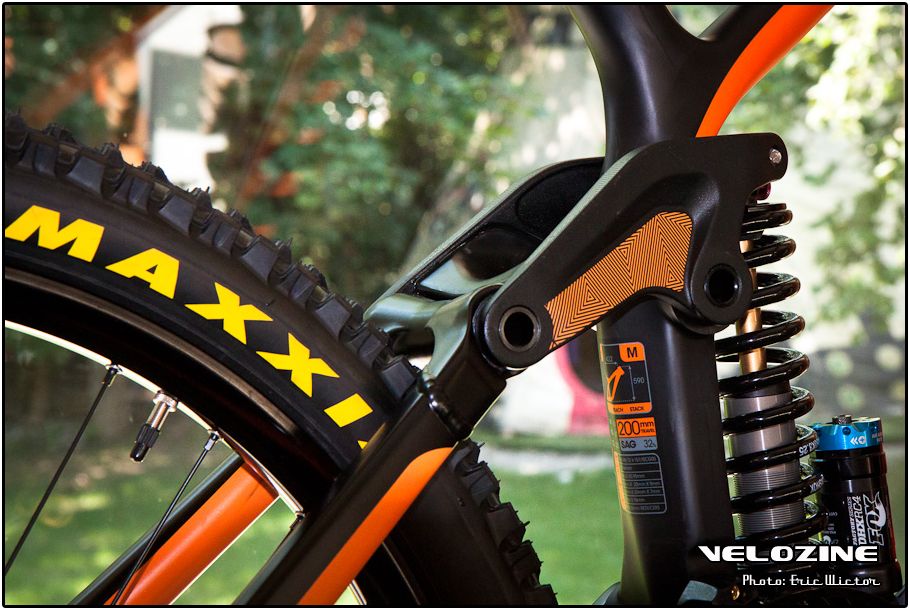 Kona was relatief laat met het introduceren van carbon in hun programma, maar de voorbije modeljaren zien we het aantal in sterke maten toenemen. Ook in het downhillsegment. Zo kregen de Operator en Supreme Operator een carbon voor-frame. Eén die er wat slanker uitziet dan zijn aluminium voorganger die we nu enkel nog als Park Operator en Entourage terugvinden. Slimme details zien we hier onder andere terug in de kabelinvoernok voor de interne kabelgeleiding die tevens dienst doet als bump-stop voor de voorvork en ook de aluminium rocker met carbon tussenstuk.