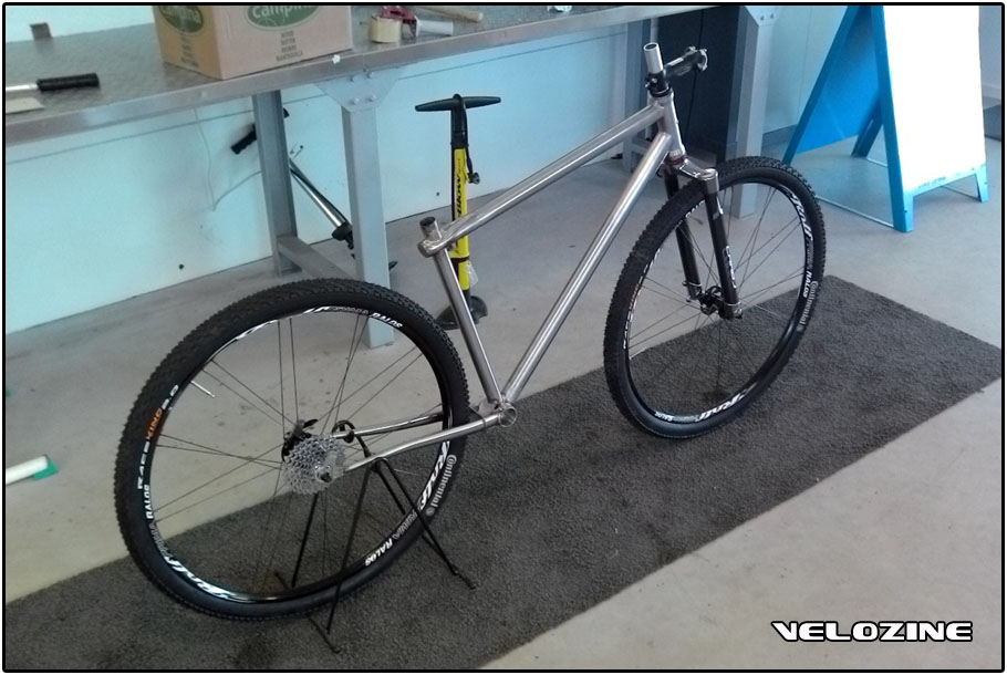 De volledige fiets wordt pas onthuld op de BikeMotion, maar Chris gaf ons al wel een kleine voorproef van de afmontage. Zo vinden we vooraan een Carbotech starre voorvork en zal de fiets op Rolf Prima Ralos 29″ wielen rollen met daar Conti’s Race King banden omheen. De remmen komen bij TRP vandaag; Chris verkoos de TRP Spyre remmen. De eerste mechanische schijfrem met twee bewegende zuigers die eenvoud combineert met vrijere loop van de schijf, waardoor deze minder snel aanloopt. Dat past mooi in het ‘Less is more’ concept, dat aan de basis lag van het concept van deze mountainbike.