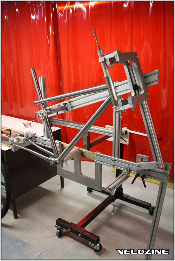 Op het moment van dit schrijven is het frame zo goed als klaar. Enkel een aantal nokjes voor de bekabeling rest nog, waarna het frame de deur uit gaat voor een shot-peening. Shot-Peening lijkt wat op zandstralen, maar de korrels zijn groter en dienen ook een ander doel. Waar het bij het zandstralen gaat om een abrassieve werking, hebben de grotere metaalkorrels het effect van talloze micro-hamerslagen die het oppervlak verdichten. De microspanningen die hierbij optreden effenen de restspanning die in de las-zones achter zijn gebleven na het lassen. Het resultaat is een meer egaal verdeelde sterkte door het hele frame, wat op zijn beurt natuurlijk gunstig is voor de levensduur. Niet geheel onbelangrijk voor een fiets die offroad het nodige zal krijgen te verduren…