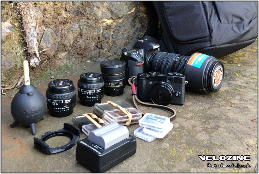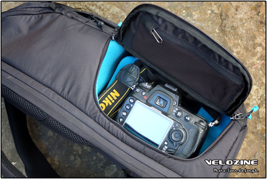 Eigenlijk nog belangrijker dan de camera apparatuur zelf: een goede, lekker zittende fototas. Grofweg heb je 2 keuzes: een camera specifieke rugtas, waar je al je fotospul in kwijt kunt (en een reservebinnenband, pompje, gelletjes, telefoon en drinken) of een backprotector rugzak, met daarin iets van compartimenten waar je fotospul hopelijk in past. Voor de echt ruige tochten waar ik mijn volledige camera uitrusting mee wil nemen, kies ik doorgaans de laatste en neem ik op de koop toe, dat ik iedere keer dat mijn camera spul eruit moet, sta te klooien. Voor meer alledag gebruik, heb ik tegenwoordig onderstaande Thule. Daar past overigens ook een 15″ laptop in, zou die ook gelden als backprotector?!
