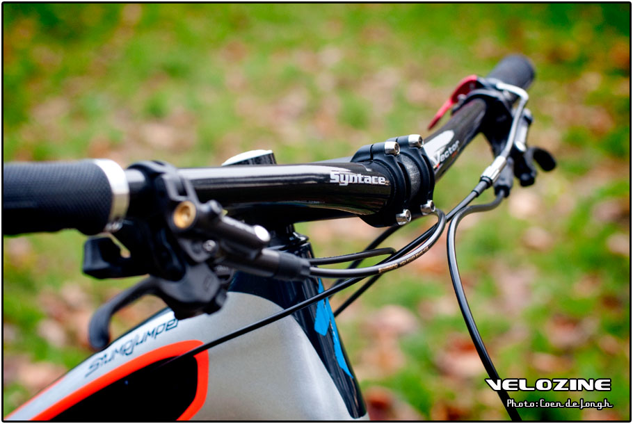 Naast de eerder voorgestelde X-Fusion Trace vork, de Shimano Saint remmen en derailleur, de DT Swiss Tricon wielen en niet te vergeten de Syntace cockpit, is de fiets voorzien van een S-Works crankstel wat voorzien is van een XX1 spider met 30t tandwiel (een van de weinige singlering opties voor dit crankstel), een 10-speed Shimano XT 11-36 cassette en een Specialized Command Post. De combinatie van een dropperpost en een vork die in veerweg te verstellen is tussen 110 en 140 mm, maakt dat de fiets ofwel XC-scherp ingesteld kan worden of laid-back voor het betere naar beneden rij werk.