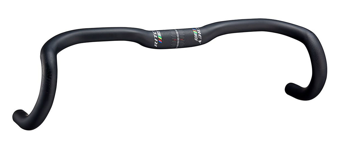 De Ritchey Venturemax is het enige stuur van de vier dat is voorzien van een ‘ergo-knik’ onderin. In mijn geval dwingt me dat tot één specifieke handpositie. Ja, die is zeker comfortabel. Maar mijn bezwaar is dat ik vervolgens op die positie nét met m’n wijsvingers de remhendels mis. Nu kan ik de reikwijdte ervan wel instellen… maar dan knijp ik mijn pink frut als ik ‘op’ de hendels rijd en rem.