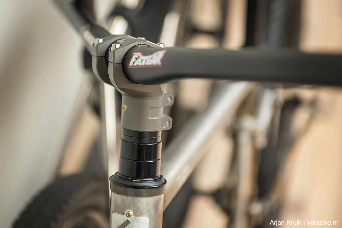 De geometrie is zo uitgedacht dat de balans tussen het voor- en achterwiel min of meer gelijk is in zowel zittende als staande positie, zonder dat de rijder daarvoor zijn lichaamsgewicht bewust moet verplaatsen. “Het idee is ook dat bij grotere en kleinere maten niet alleen de bovenbuis op- of afgeschaald wordt, maar ook de achtervork. En dan niet met slechts een paar millimeter per maat”, zo vervolgt hij. Om de balans te verkrijgen is een ‘net -zero’ stuurpen gemonteerd; eentje waarbij het stuur dus bovenop de vorkbuis zit en niet er vóór. “De stuurpen nodigt nog meer uit de fiets te sturen door gewichtsverplaatsing.”