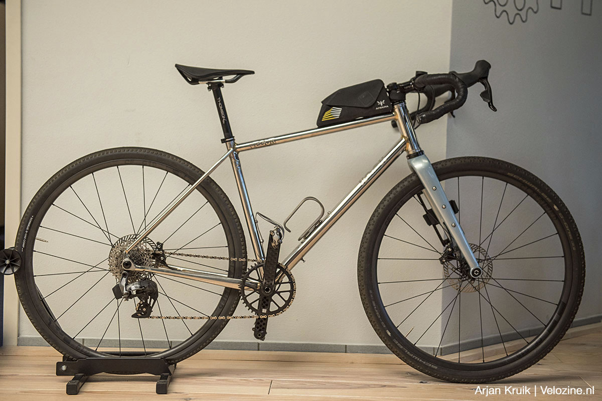 Wat je hier vooral merkt, is dat er ruimte is voor verbeelding. De anticipatie van wat er allemaal zou kunnen hangt bijna voelbaar in de lucht. Of het nu gaat over een crosscounty-hardtail, gravelbike, bikepacker, met veel, weinig of géén vering. Met derailleur, naafversnellingen of een versnellingsbak. Staal of titanium. De gedachte dat een fiets niet alleen gekocht, maar bedacht en naar wens gebouwd kan worden – samen, stap voor stap – maakt een bezoek aan The Bicycle Hub tot iets bijzonders. Niet alleen het verhaal dat je onderweg óp de fiets beleeft krijgt hier betekenis, maar ook het verhaal ervoor. Het moment waarop een idee langzaam vorm krijgt, een detail wordt besproken, een keuze in materiaal of kleur wordt gemaakt; dát is hier onderdeel van de beleving.