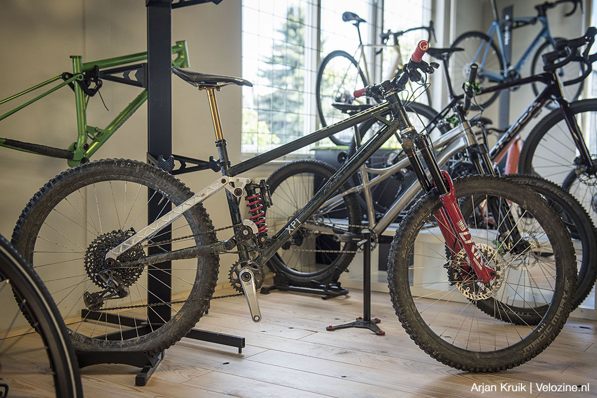 Dat beide heren veel ervaring hebben is een pré bij de ontwikkeling van fietsen, maar het maant ze alles behalve stil te zitten. En met zo’n arsenaal aan gereedschappen zou je voor minder… Lars en Michiel verkennen graag grenzen. Van het maken tot het rijden. Neem de UNpaved XP2: een experimentele trailbike met een balhoofdhoek van 63 graden, 150 millimeter veerweg en cranks van slechts 145 millimeter. Lars over deze bike, die hij door Michiel voor zichzelf liet bouwen: “Het idee is dat de ‘longer, lower and slacker’-trend op een gegeven moment eindigt. Maar waar velen in kleine stappen naar dat punt toe kruipen, heb ik met deze trailbike een sprong proberen te maken naar misschien wel het eindstation”, zo vertelt Lars. “Voor mij vormt deze fiets hét bewijs dat balhoofdhoek en wielbasis absoluut geen beperking vormen bij het sturen.”