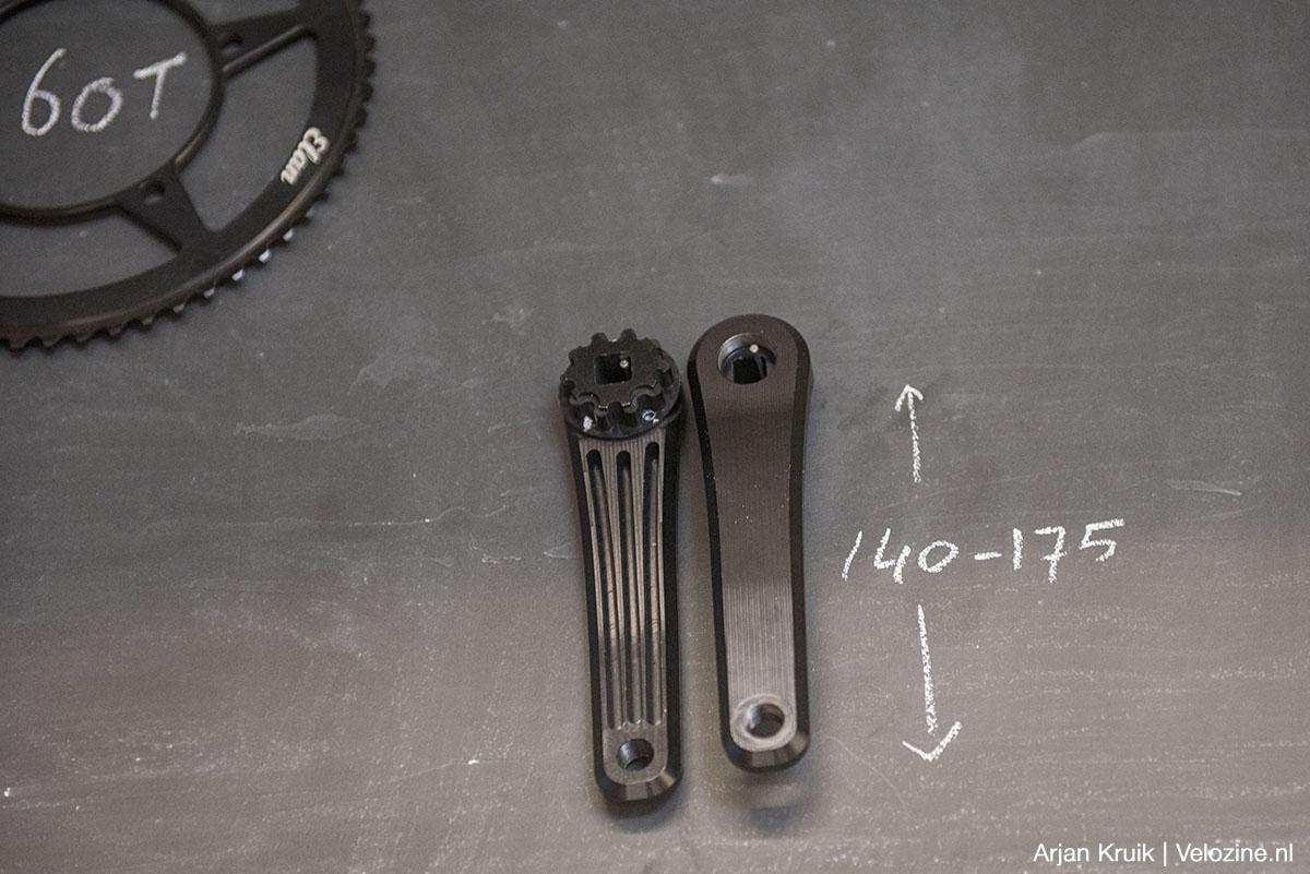 Ook een andere trend is meegenomen in de XP2 én verder doorgevoerd: kortere cranks. De Acto5-cranks zijn 145 millimeter kort. Door die kortere cranks kan de trapas veel lager geplaatst worden en verlaagt dus het zwaartepunt. “De rijder zit zo nóg meer tussen de wielen”, aldus Lars.