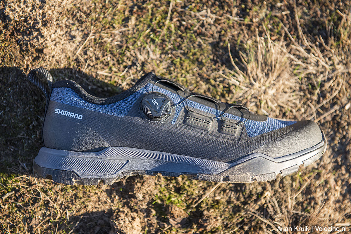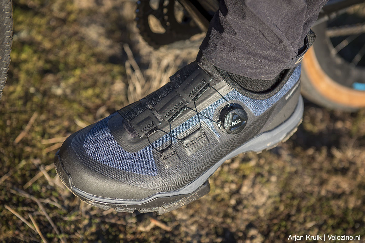 In de wereld van Shimano staan de letters EX voor explorer. Zo enthousiast als ik ben over de bovenstaande sets, zo ambivalent sta ik tegenover de combinatie van EX7-schoenen en XT T8000-pedalen. Shimano beoogt met deze combinatie fietsers te bedienen die graag willen vastklikken, maar die daarnaast eveneens de mogelijkheid willen hebben ook zonder vastklikken te kunnen fietsen en die bovendien geen concessies willen doen ten aanzien van de loopkwaliteiten.