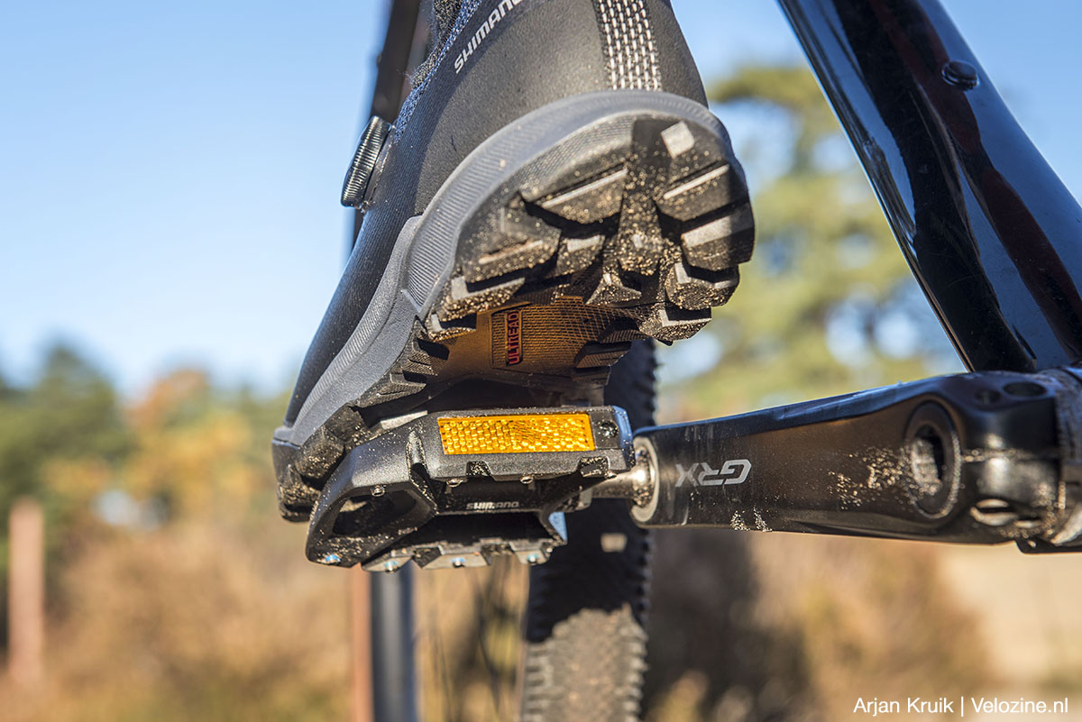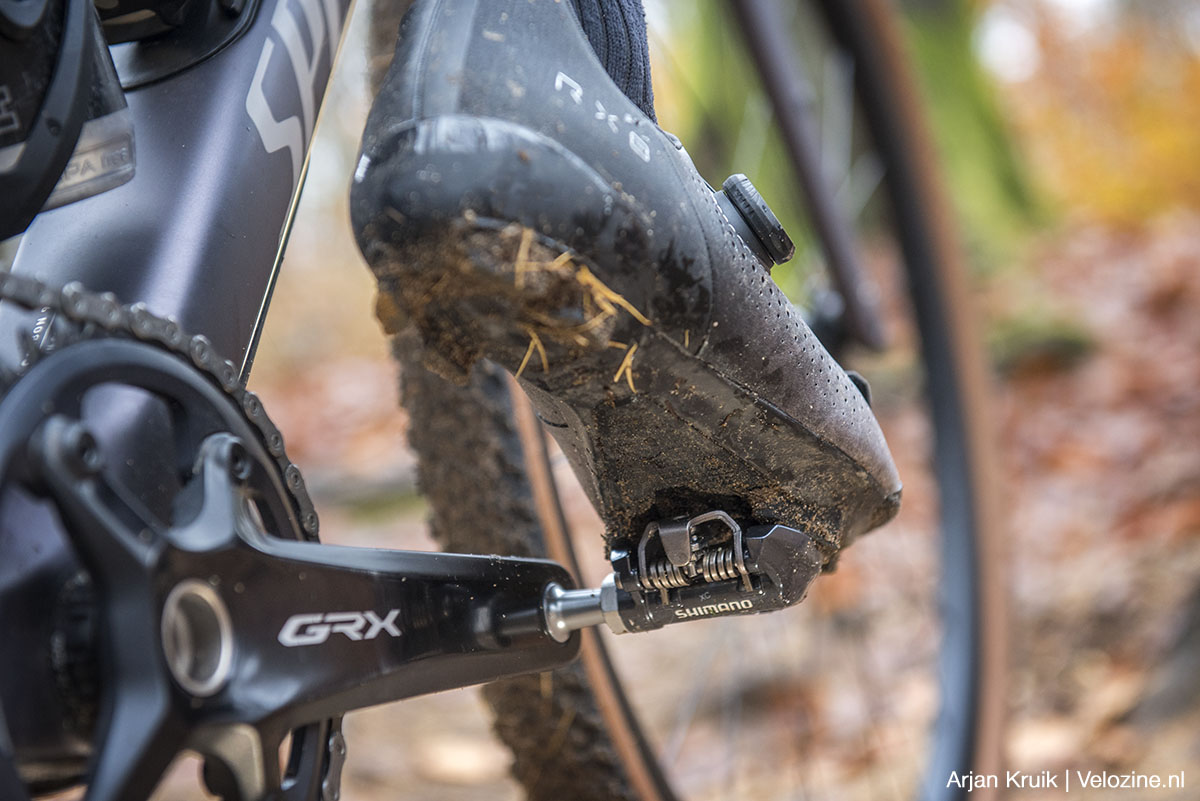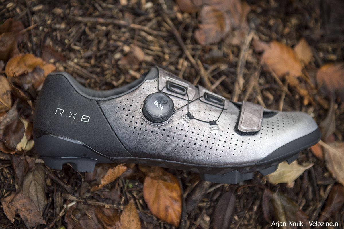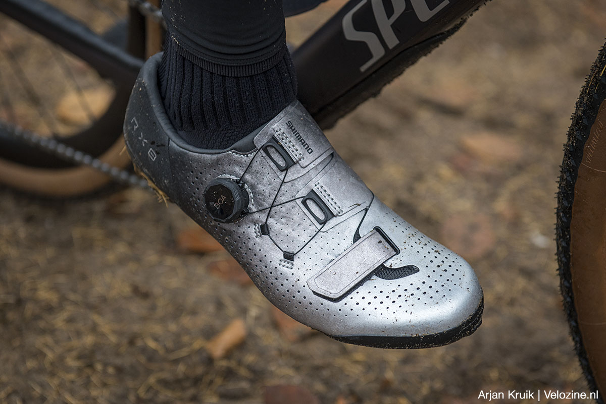 Wie ook onder modderige omstandigheden wil gravelen, gewoon willen kunnen lopen en tegelijkertijd niet wil inleveren op efficiëntie, kan eigenlijk niet om SPD-pedalen heen. En alhoewel stijve mountainbikeschoenen zoals de hierboven beschreven XC7 uitstekend voldoen, heeft Shimano toch gemeend een speciale lijn gravelbikeschoenen neer te moeten zetten. De RX8 is binnen die schoenenlijn het op één na stijfste exemplaar, met een stijfheidswaarde van 10 (op een schaal van 12).